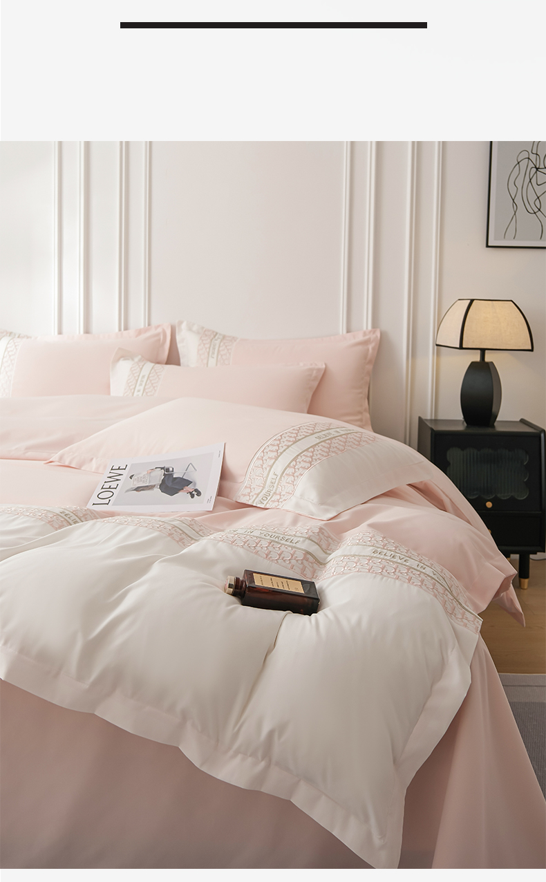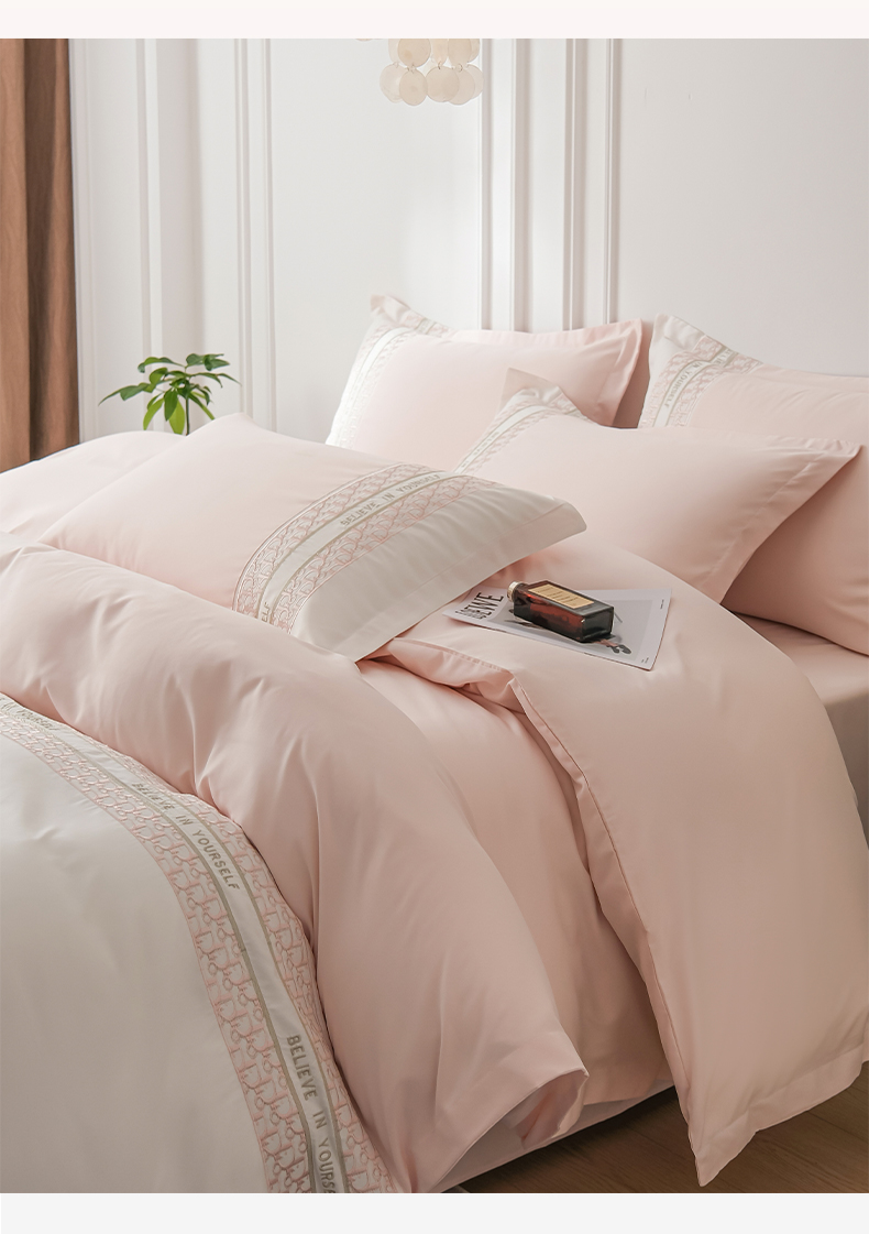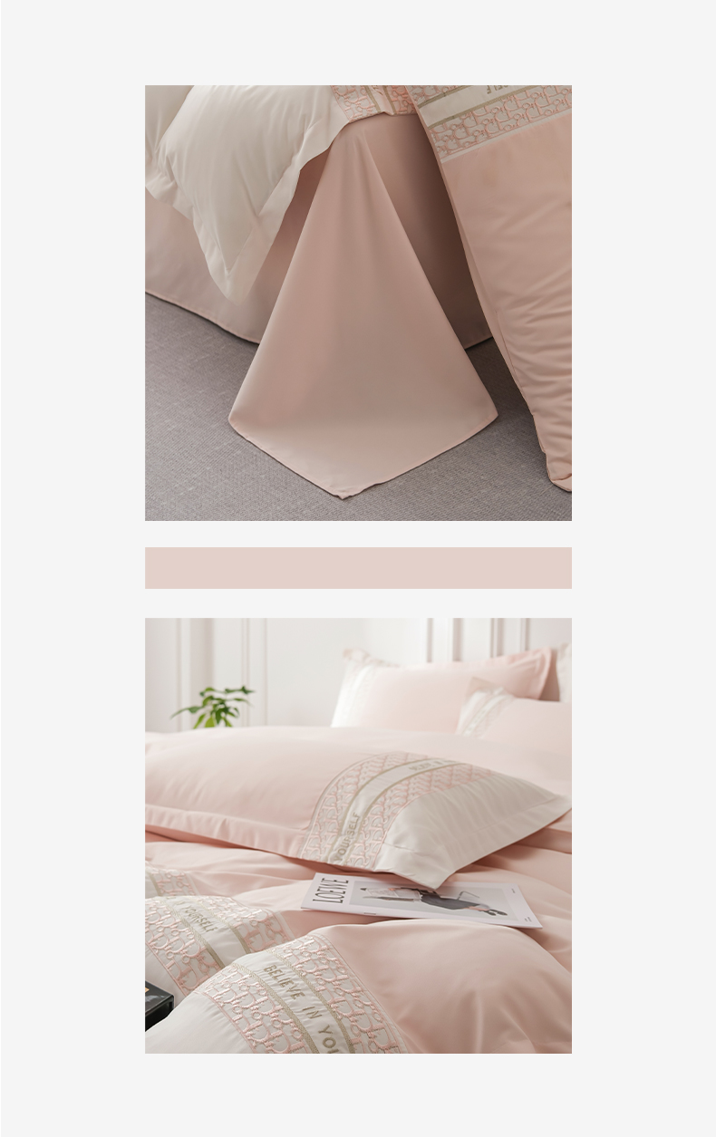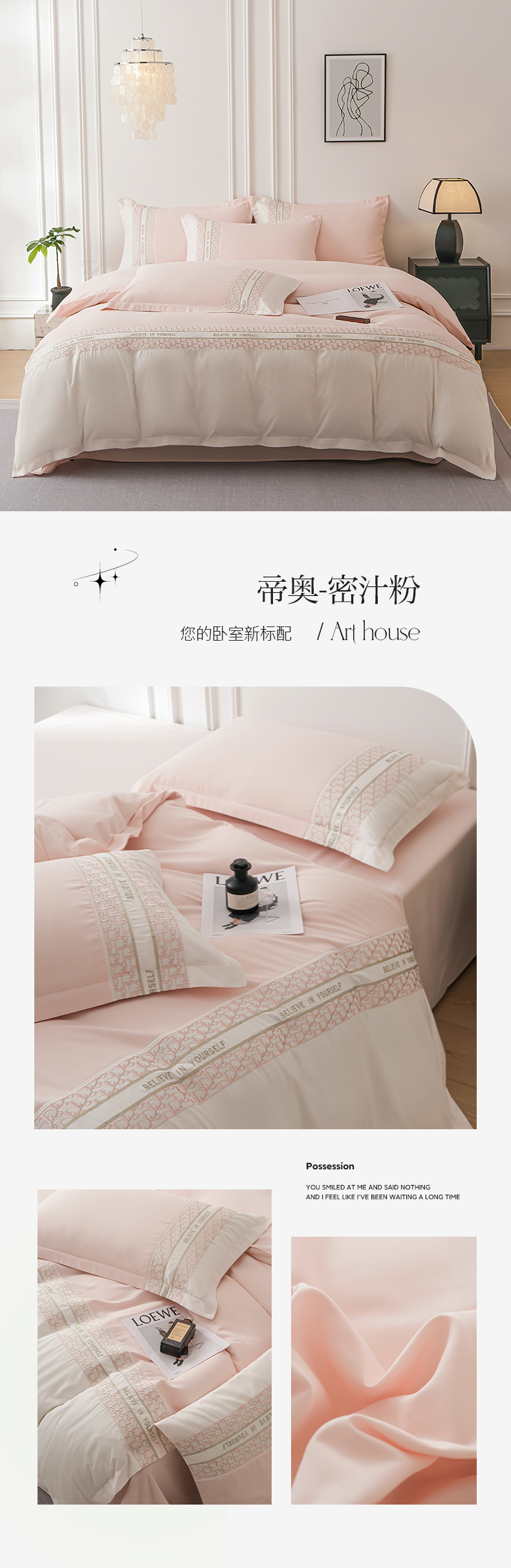 布可家纺 2025新款时髦大牌高级感水洗磨毛刺绣四件套-帝奥 帝奥-密汁粉