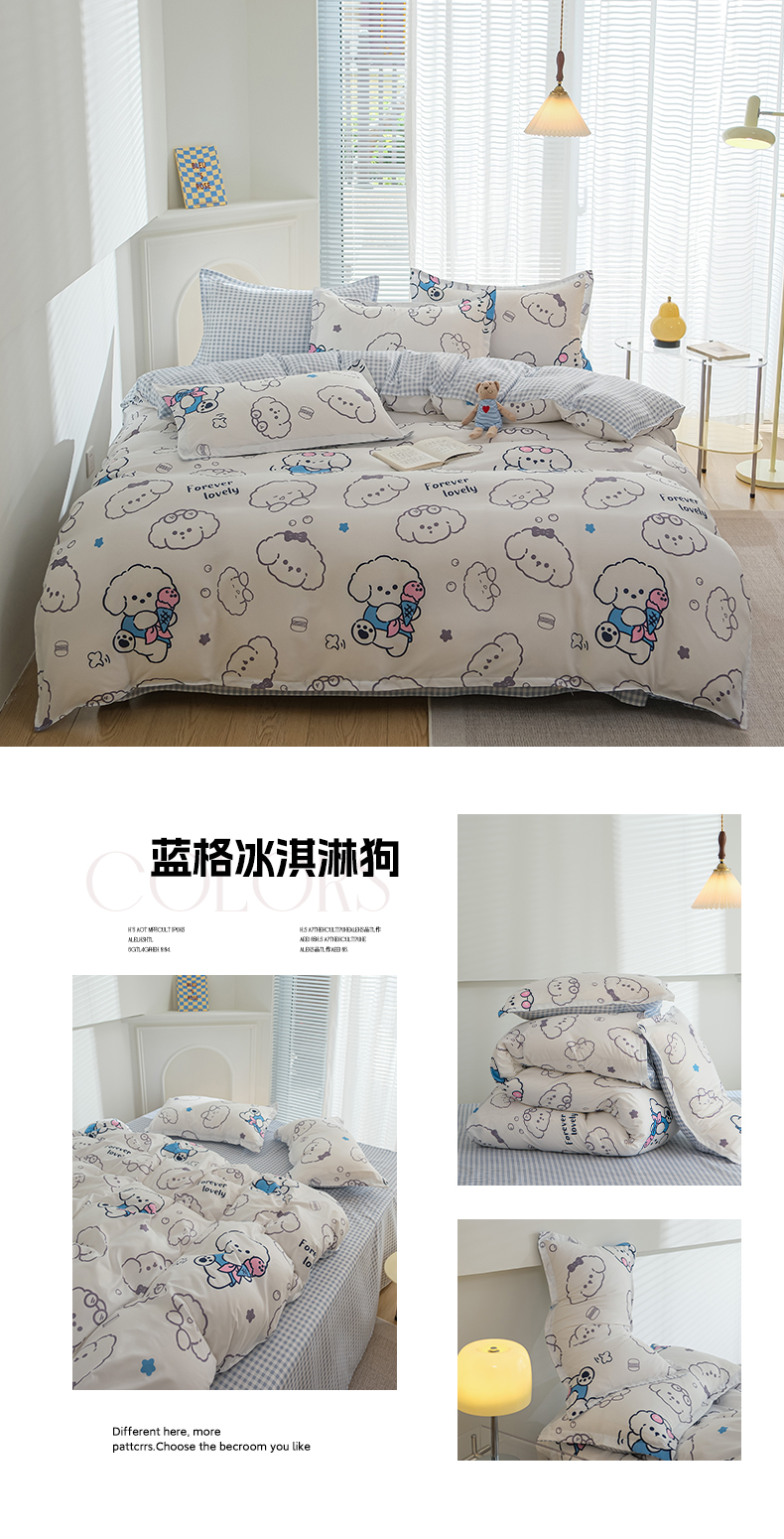 当前位置: 91家纺网 > 商品网购 > 床品套件 > 四件套 > 水洗棉四件套 > 布可家纺 2025新款水洗棉印花四件套 蓝格冰淇淋狗