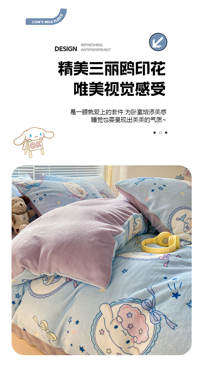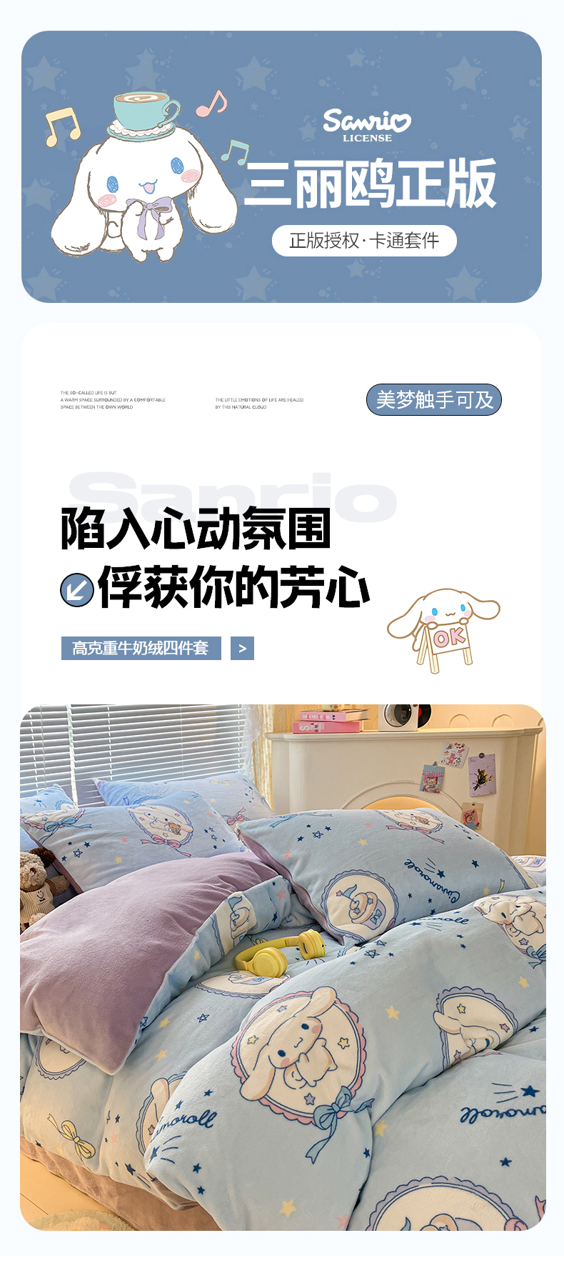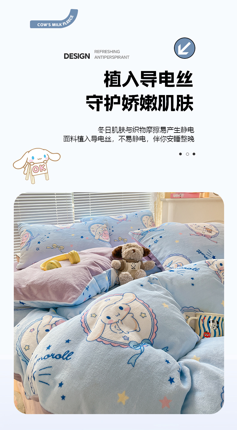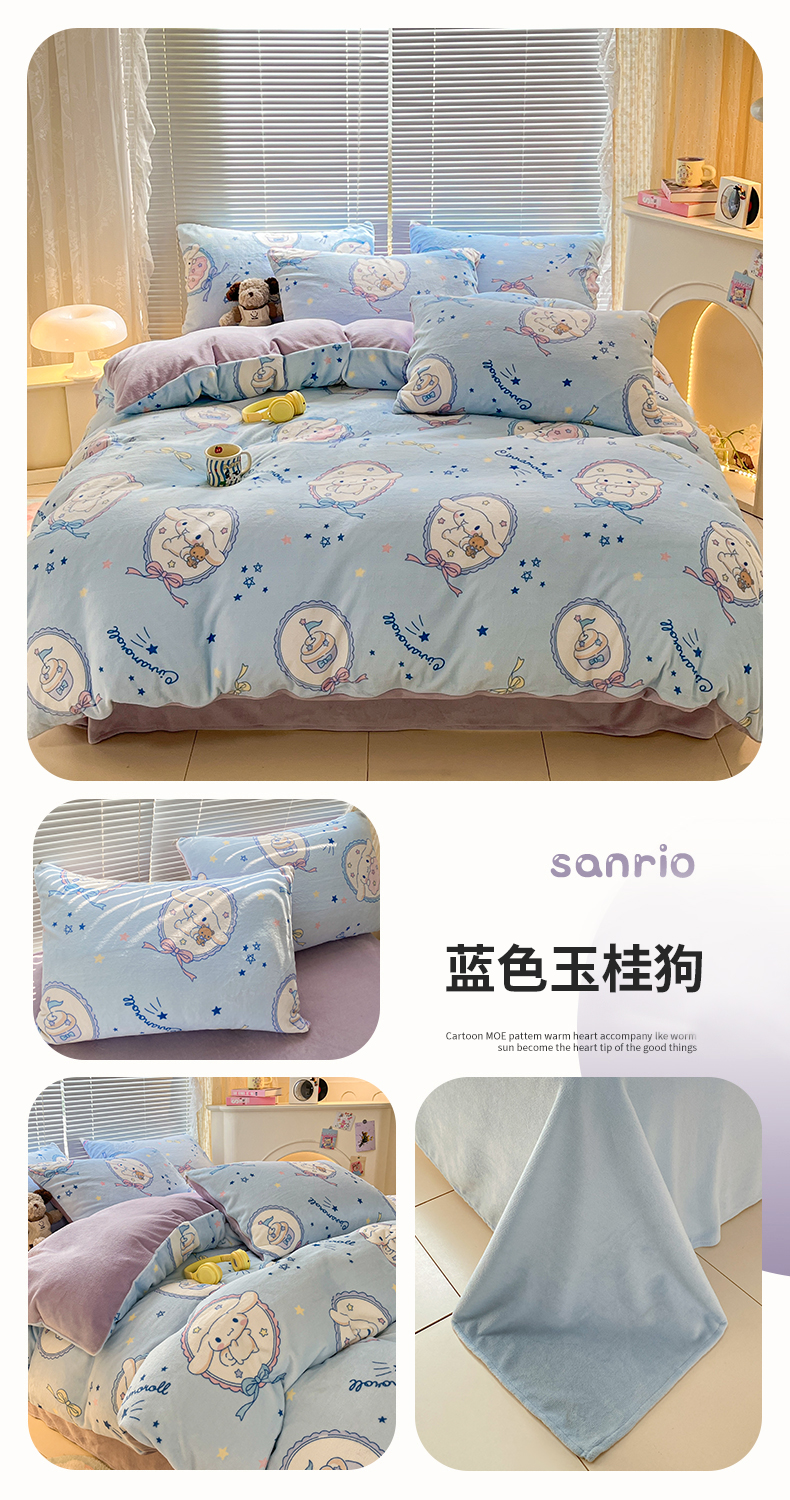 当前位置: 91家纺网 > 商品网购 > 床品套件 > 四件套 > 牛奶绒四件套 > 美澳家纺 2024新款200克三丽鸥系列卡通印花牛奶绒单被套三四件套 蓝色玉桂狗