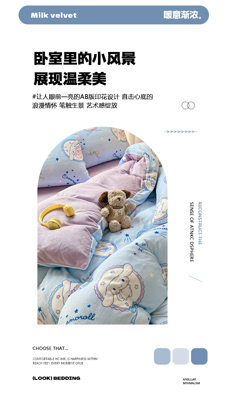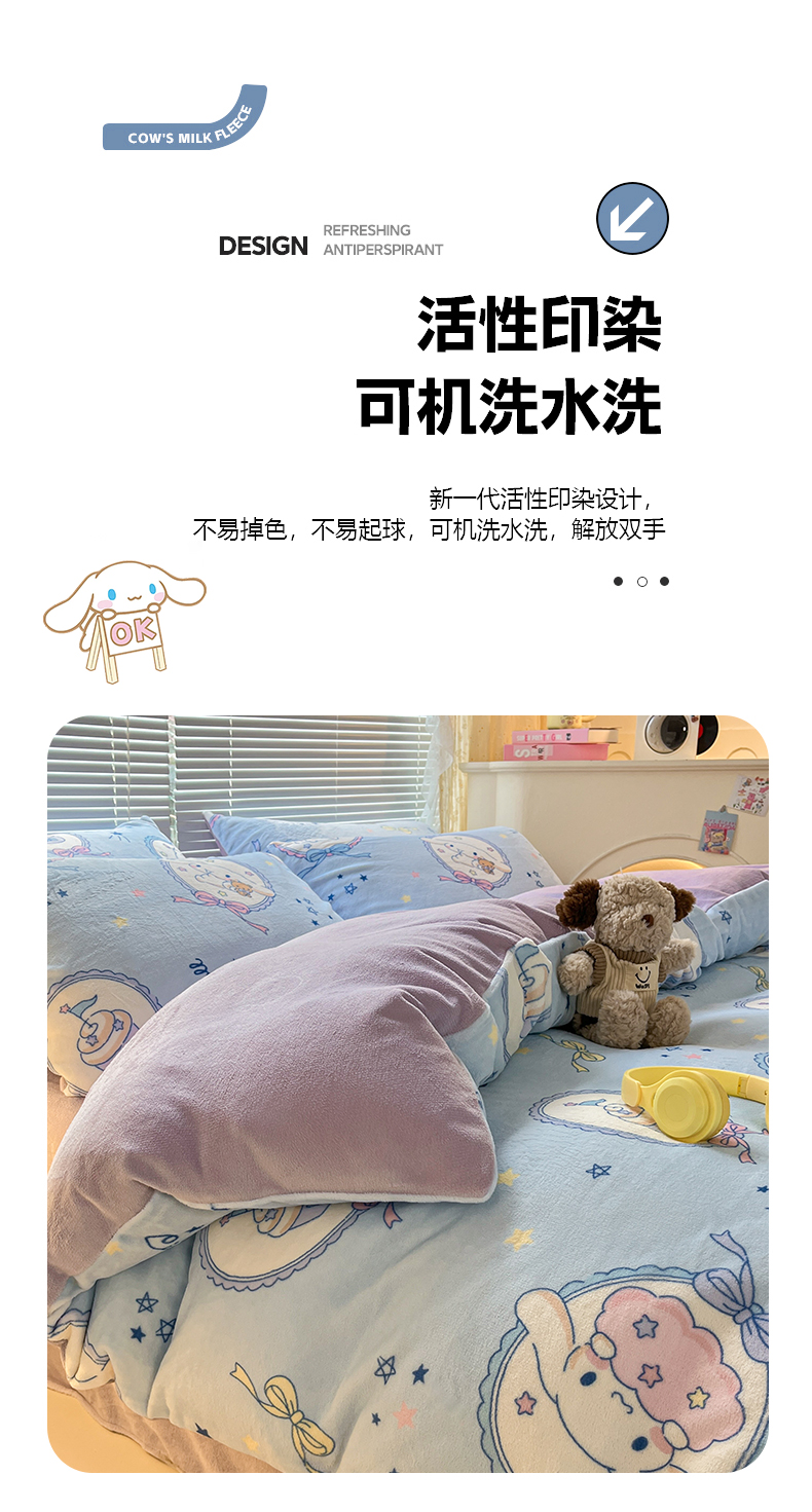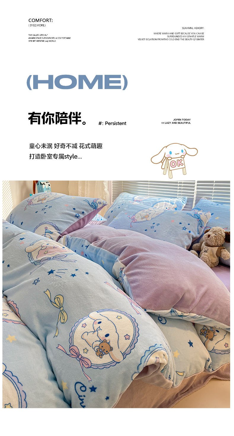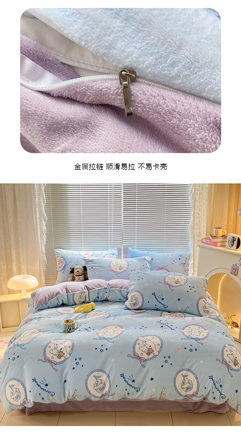 当前位置: 91家纺网 > 商品网购 > 床品套件 > 四件套 > 牛奶绒四件套 > 美澳家纺 2024新款200克三丽鸥系列卡通印花牛奶绒单被套三四件套 蓝色玉桂狗