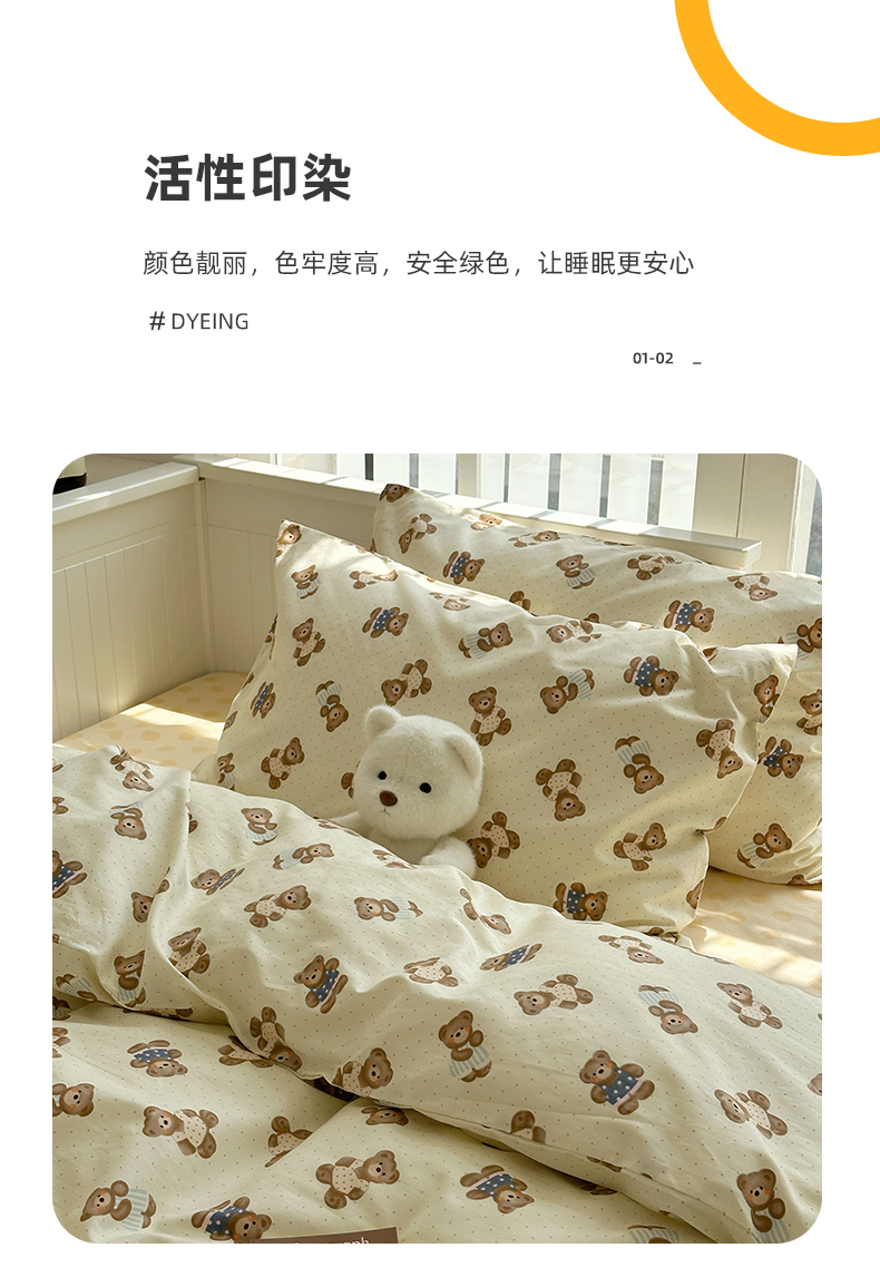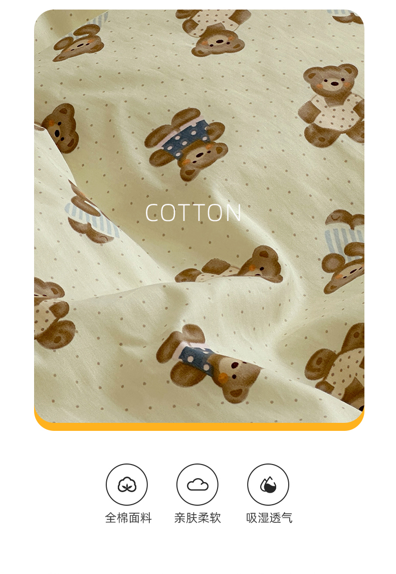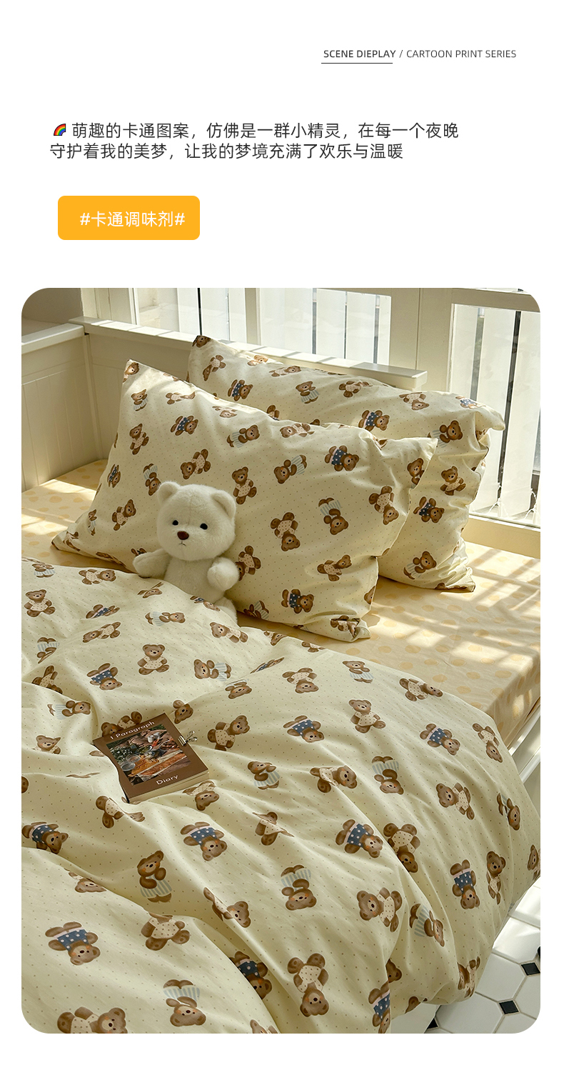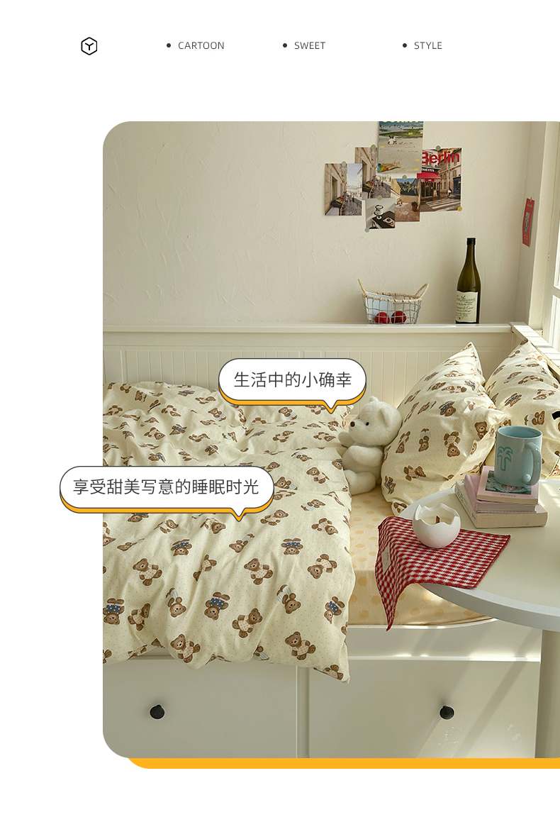 (总)尺素 2025新款纯棉卡通ins风四件套可爱少女风全棉被套纯色1.8床笠加大床单学生1.2三件套,告白熊--浅蓝,格调粉--奶黄,格调粉--桃粉,蓝白情书--浅蓝,清梦--冰沙绿,清梦--浅黄,小熊软糖--焦糖