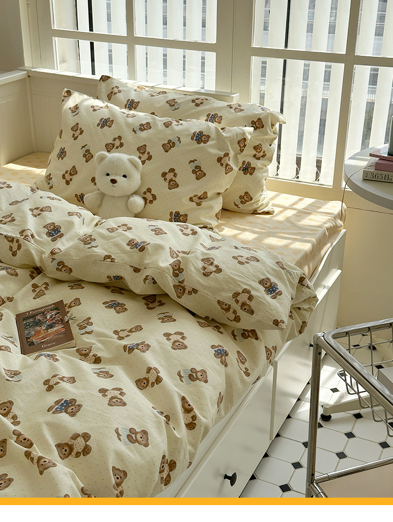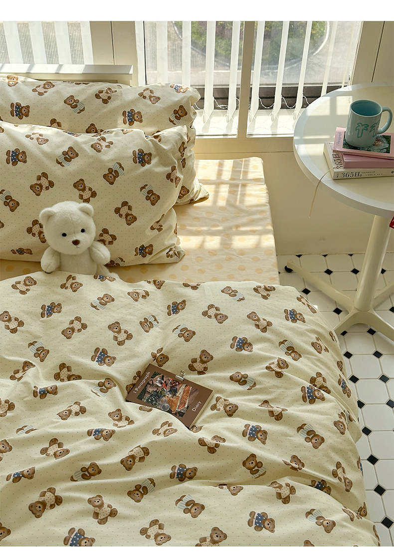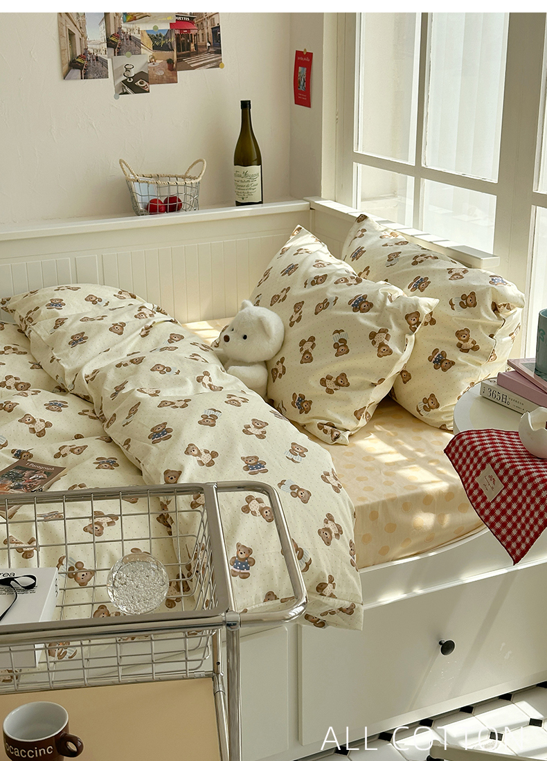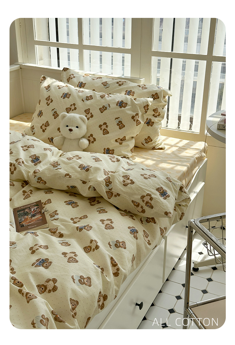 (总)尺素 2025新款纯棉卡通ins风四件套可爱少女风全棉被套纯色1.8床笠加大床单学生1.2三件套,告白熊--浅蓝,格调粉--奶黄,格调粉--桃粉,蓝白情书--浅蓝,清梦--冰沙绿,清梦--浅黄,小熊软糖--焦糖