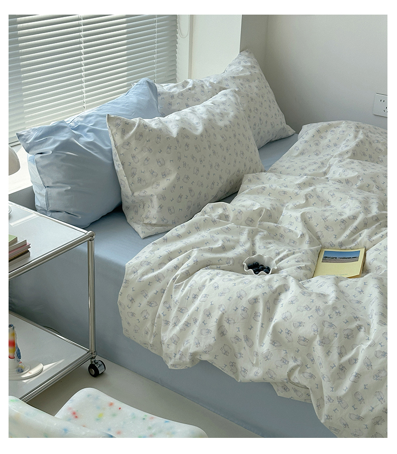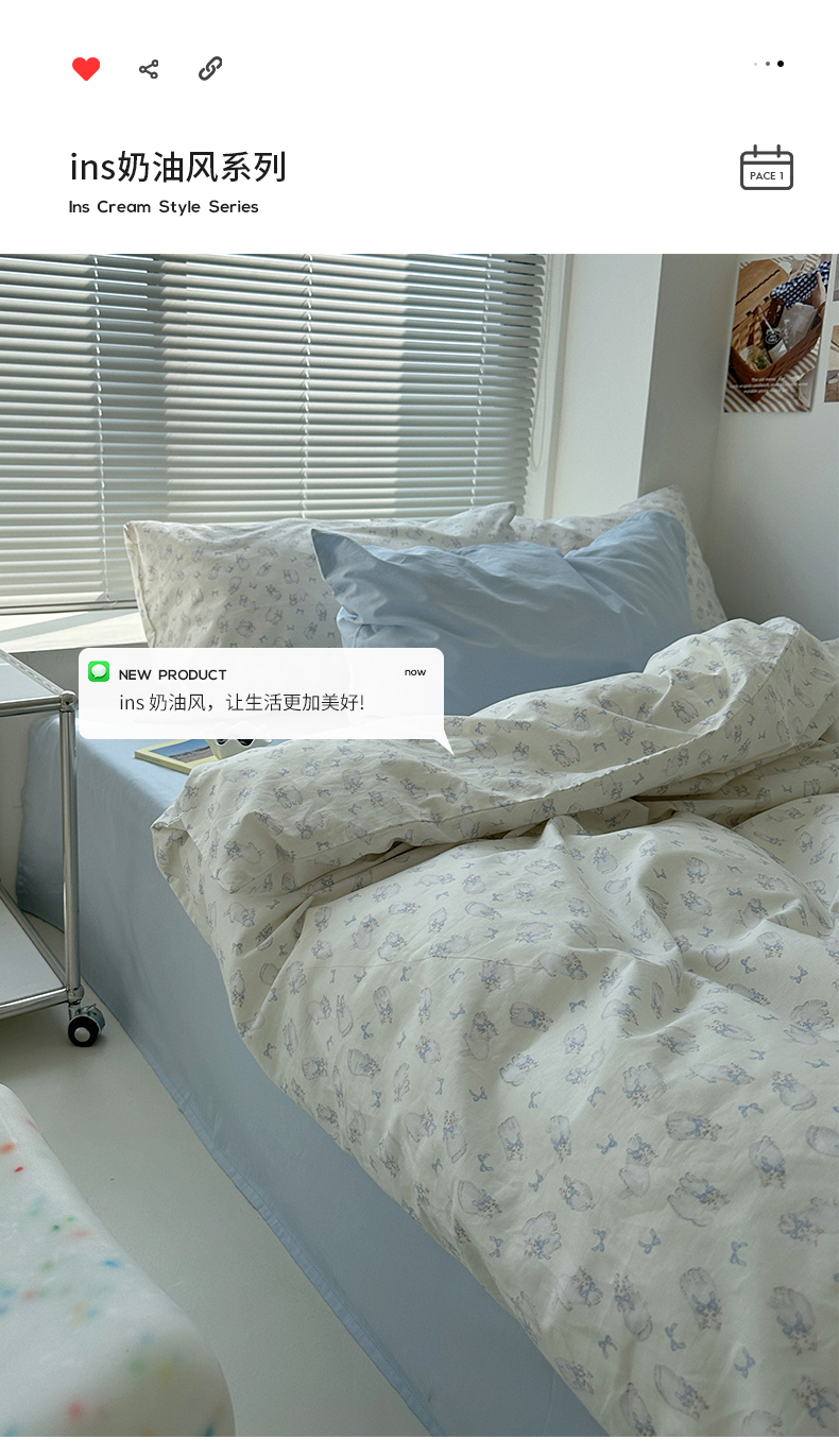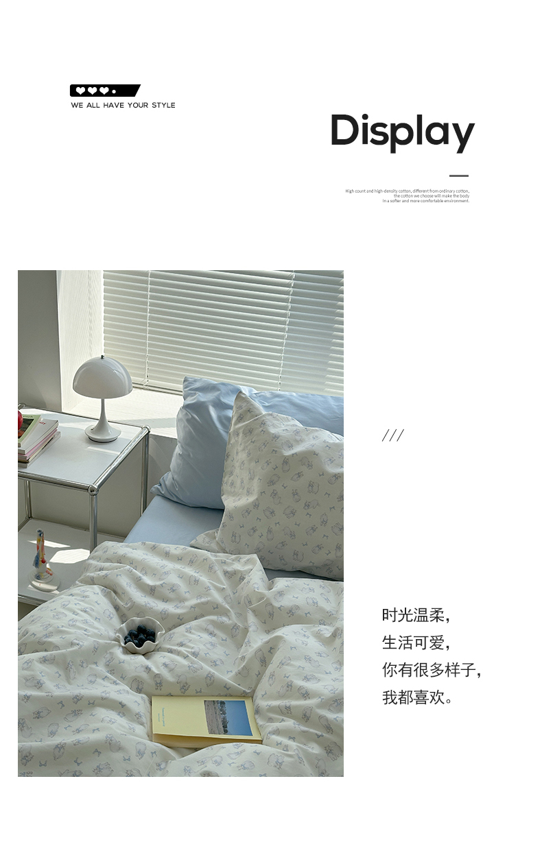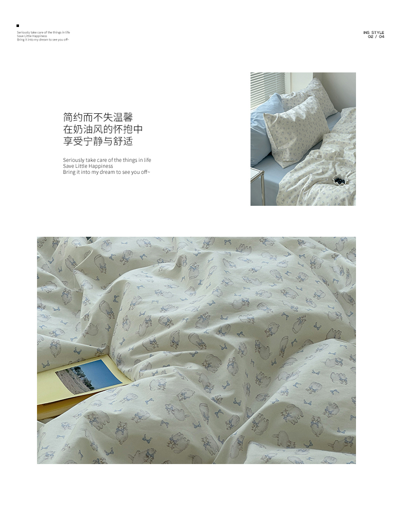 (总)尺素 全棉40支喷气13372韩国ins设计师四件套,花舞,篱落粉,篱落黄,落英,派对,童趣,涂鸦,小粉兔,雪地熊