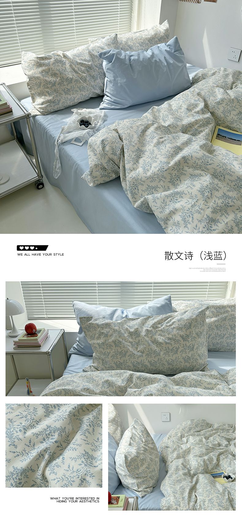 (总)尺素 2025新款田园小清新纯棉四件套出口韩国ins博主风全棉被套纯色加大床单1.8床笠印花枕套学生宿舍三件套,春不晚 桃粉,花似锦 奶白,紫鸢千夏紫