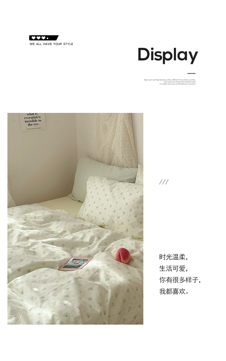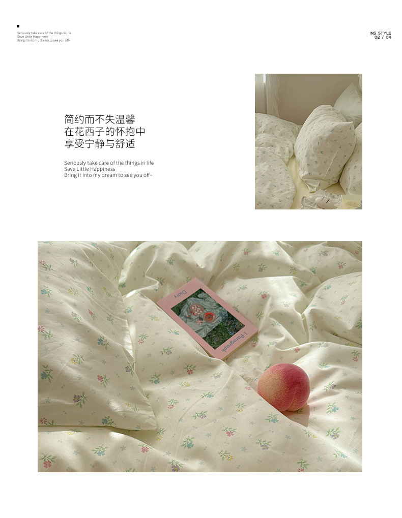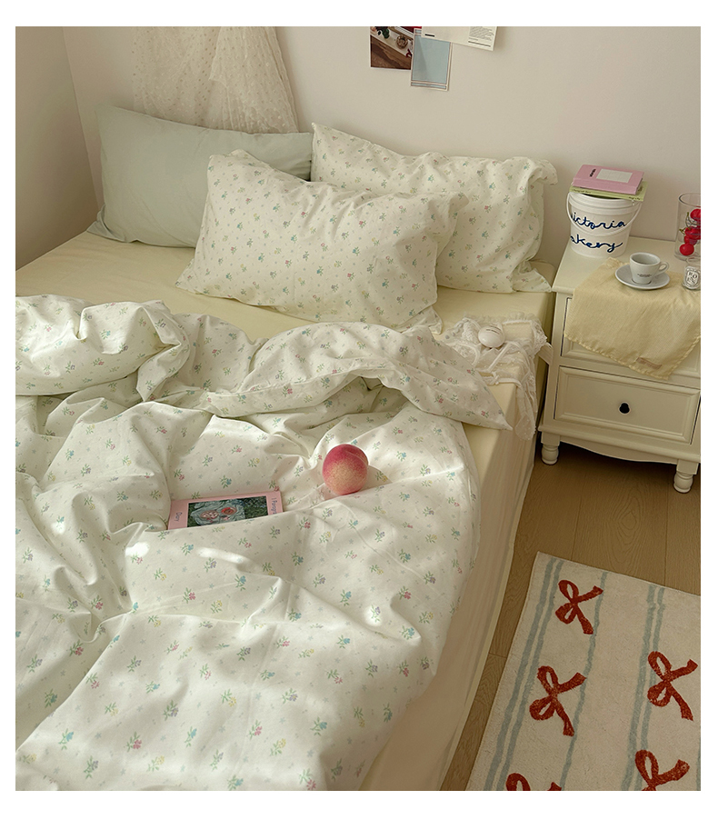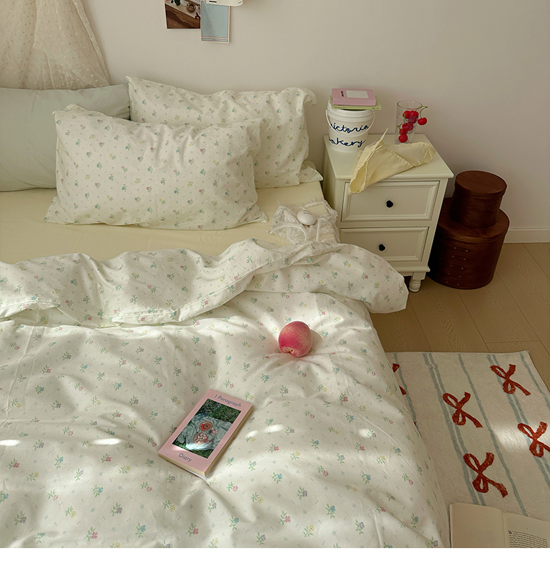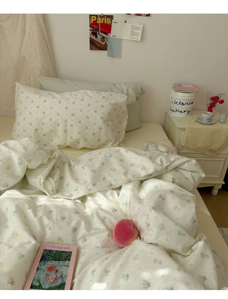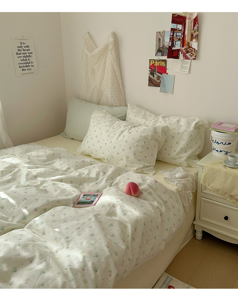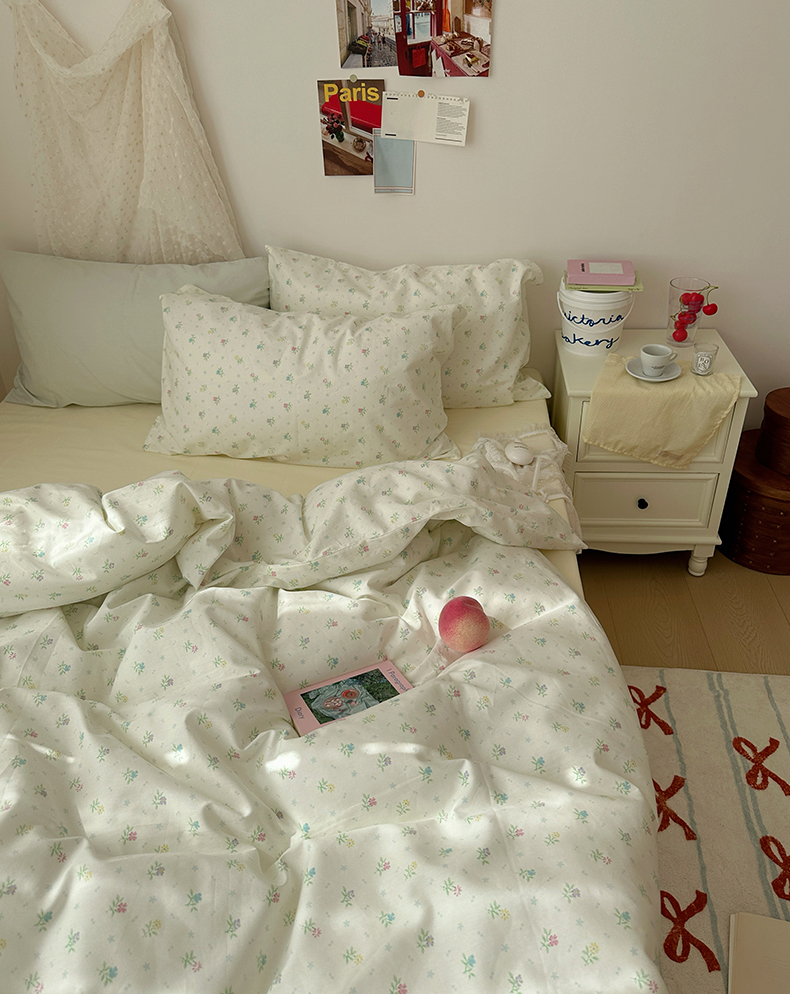 当前位置: 91家纺网 > 商品网购 > 床品套件 > 四件套 > 全棉普通四件套 > 韩国纯棉ins风小碎花田园风四件套花卉活性印花小清新被套纯色加大床单1.8床笠混搭风纯色印花枕套 花西子(奶黄)