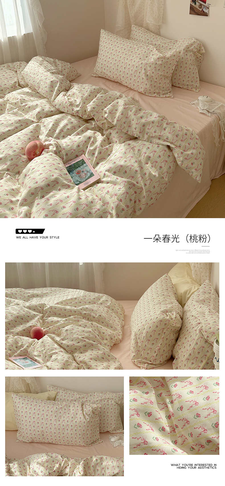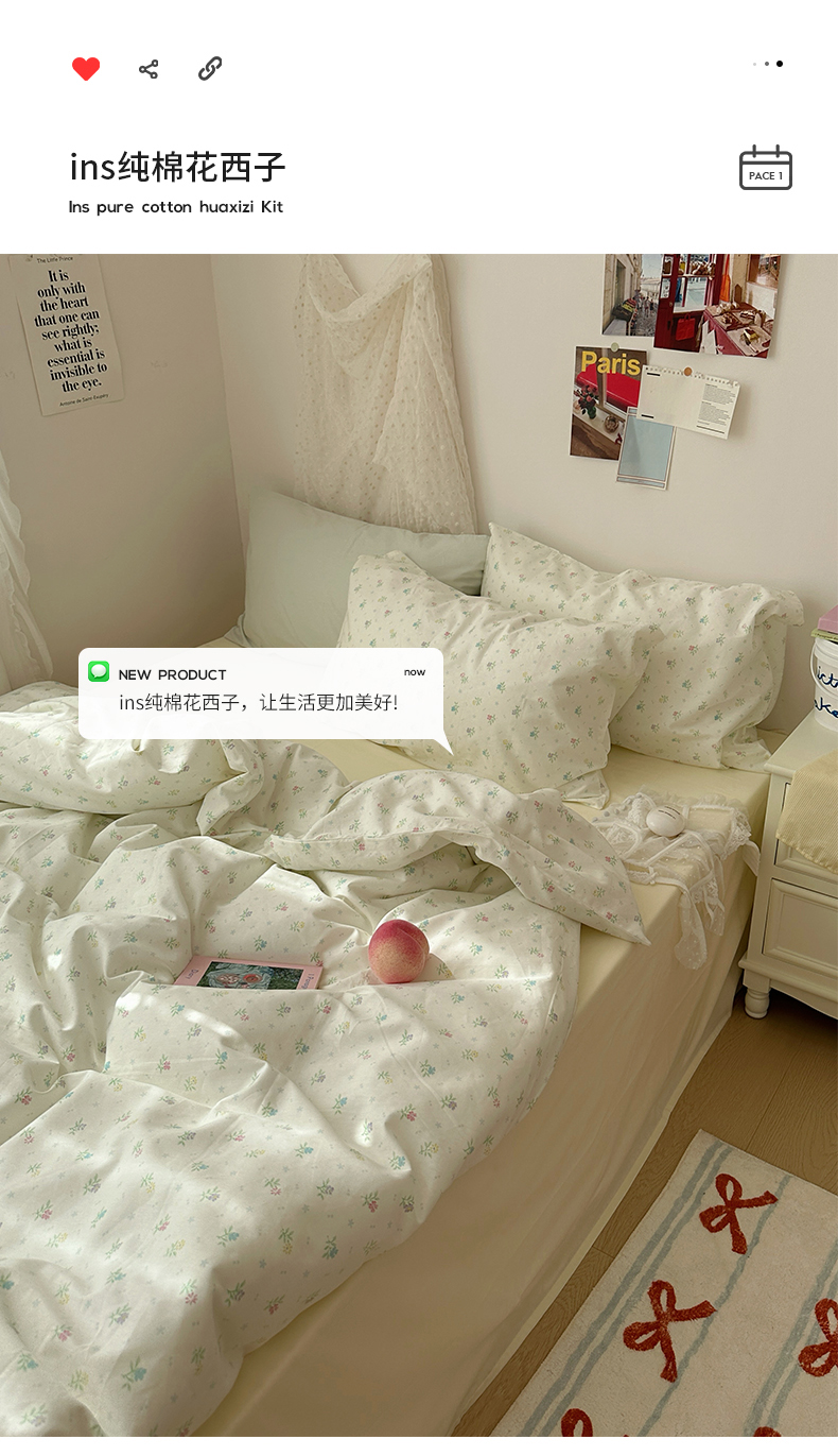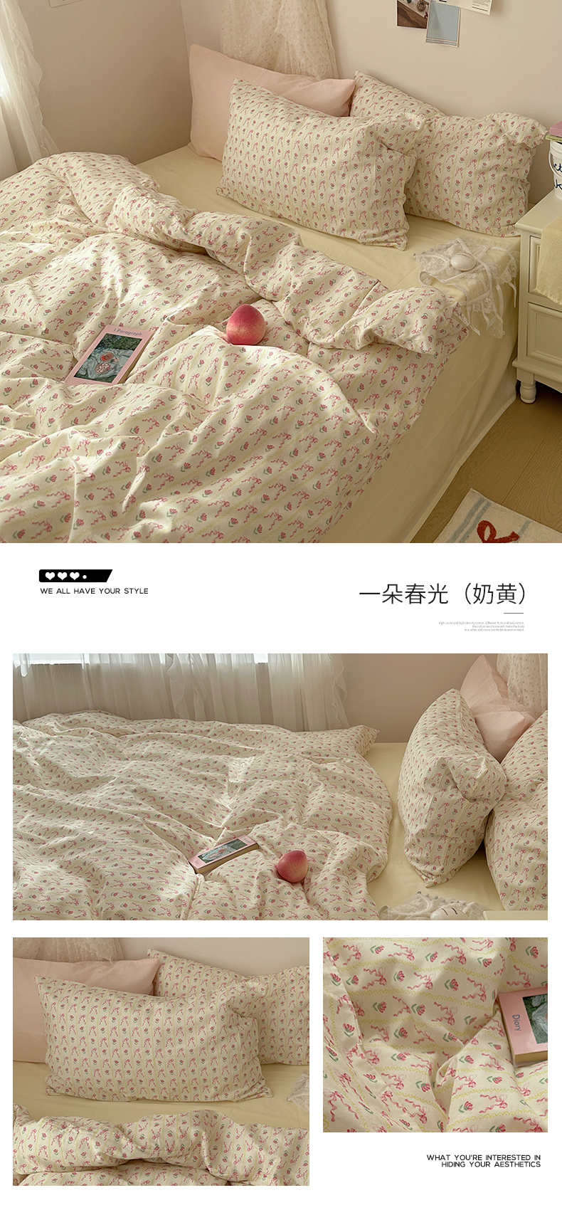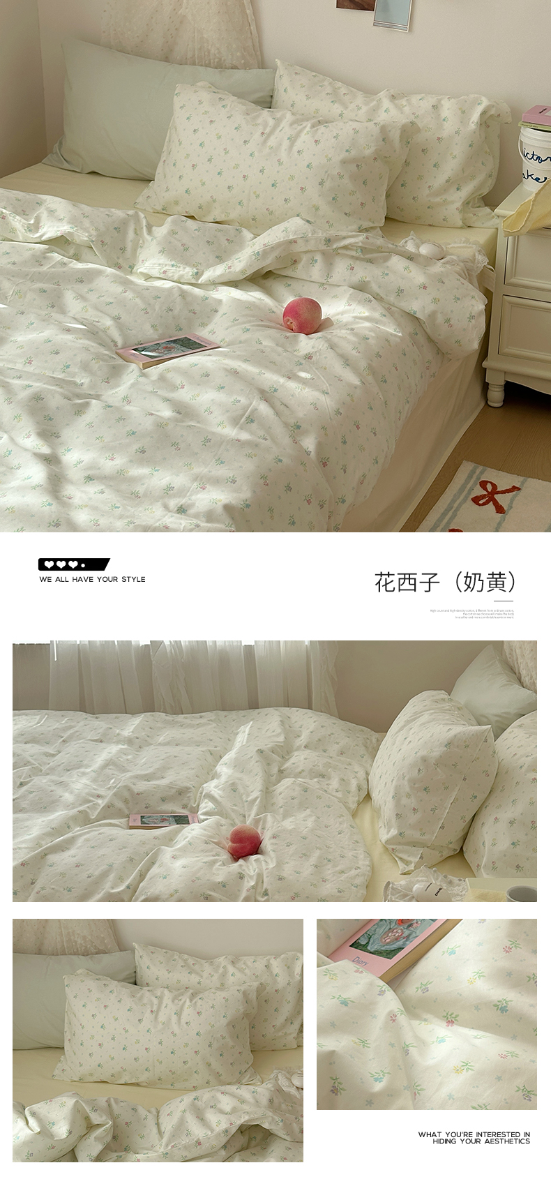 当前位置: 91家纺网 > 商品网购 > 床品套件 > 四件套 > 全棉普通四件套 > 韩国纯棉ins风小碎花田园风四件套花卉活性印花小清新被套纯色加大床单1.8床笠混搭风纯色印花枕套 花西子(奶黄)