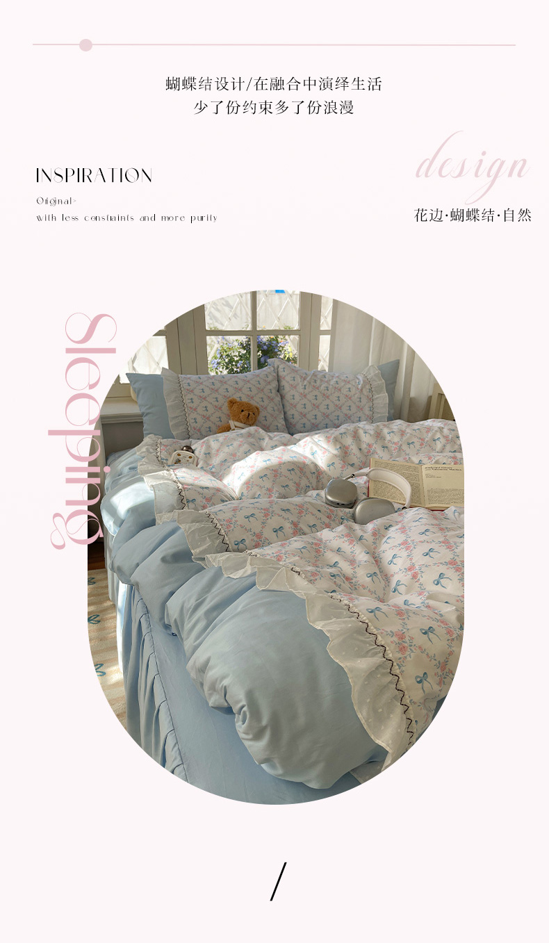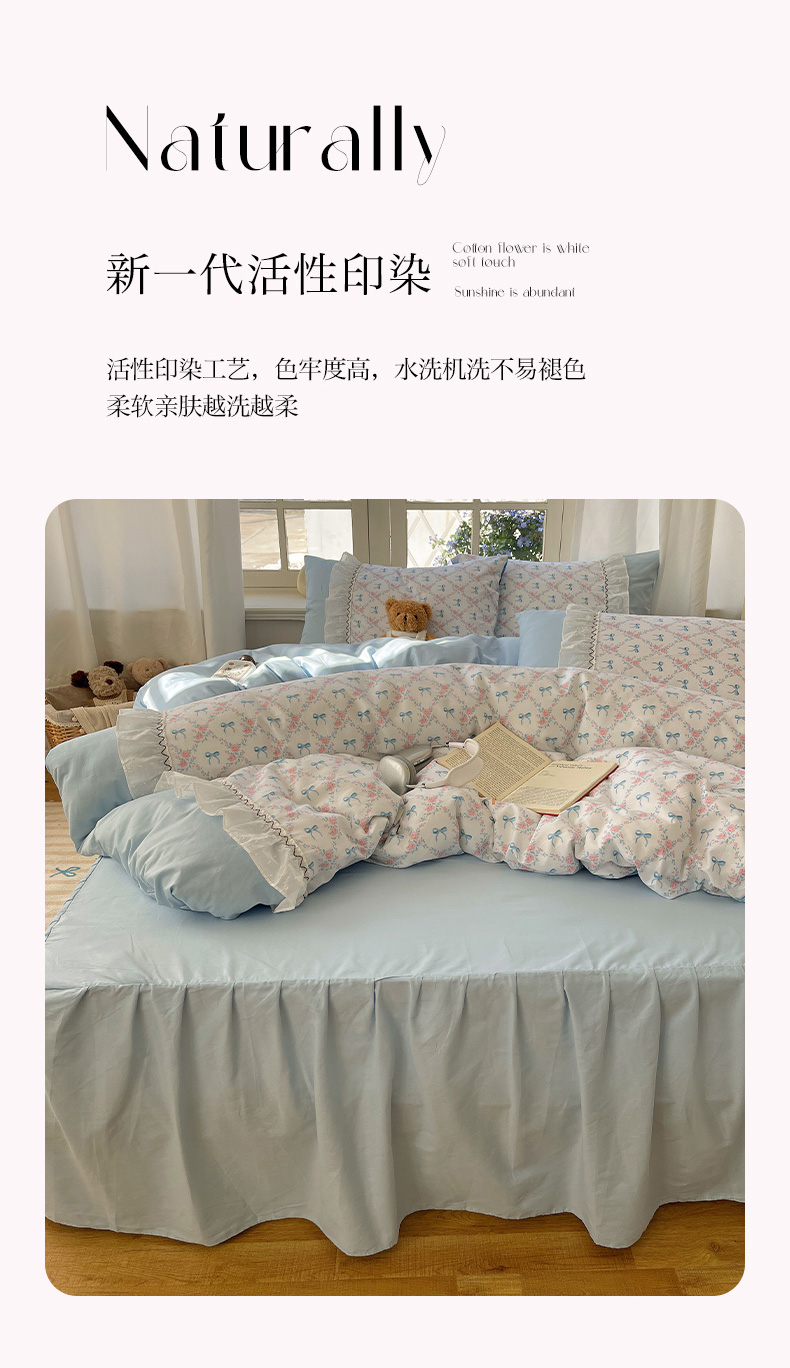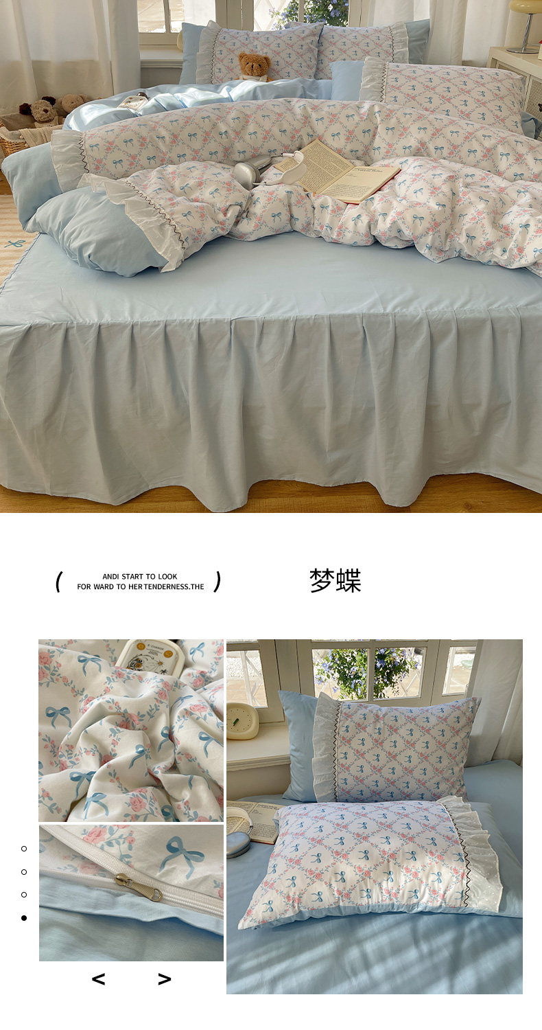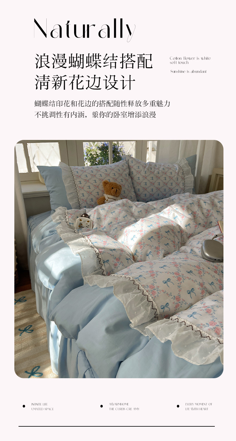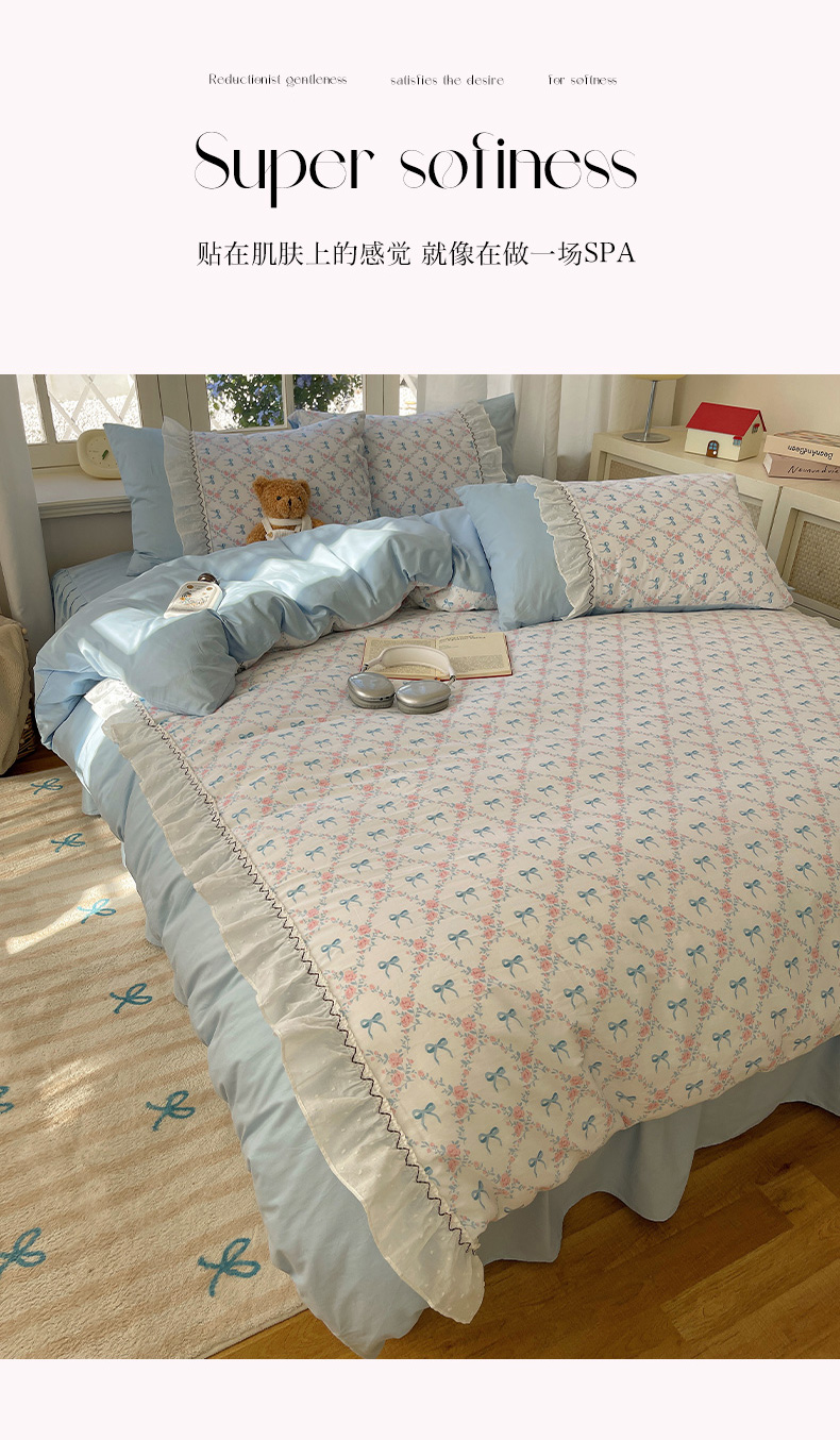 (总)瑞莱 2025新款水洗棉拼接工艺花边款四件套-波点蝴蝶结,波点蝴蝶结-蓝