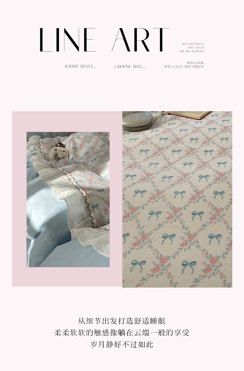 (总)瑞莱 2025秋冬高克重韩系蕾丝花边雕花绒四件套,邂逅,郁金香,艾莎,蜜夏,同心结,悠然