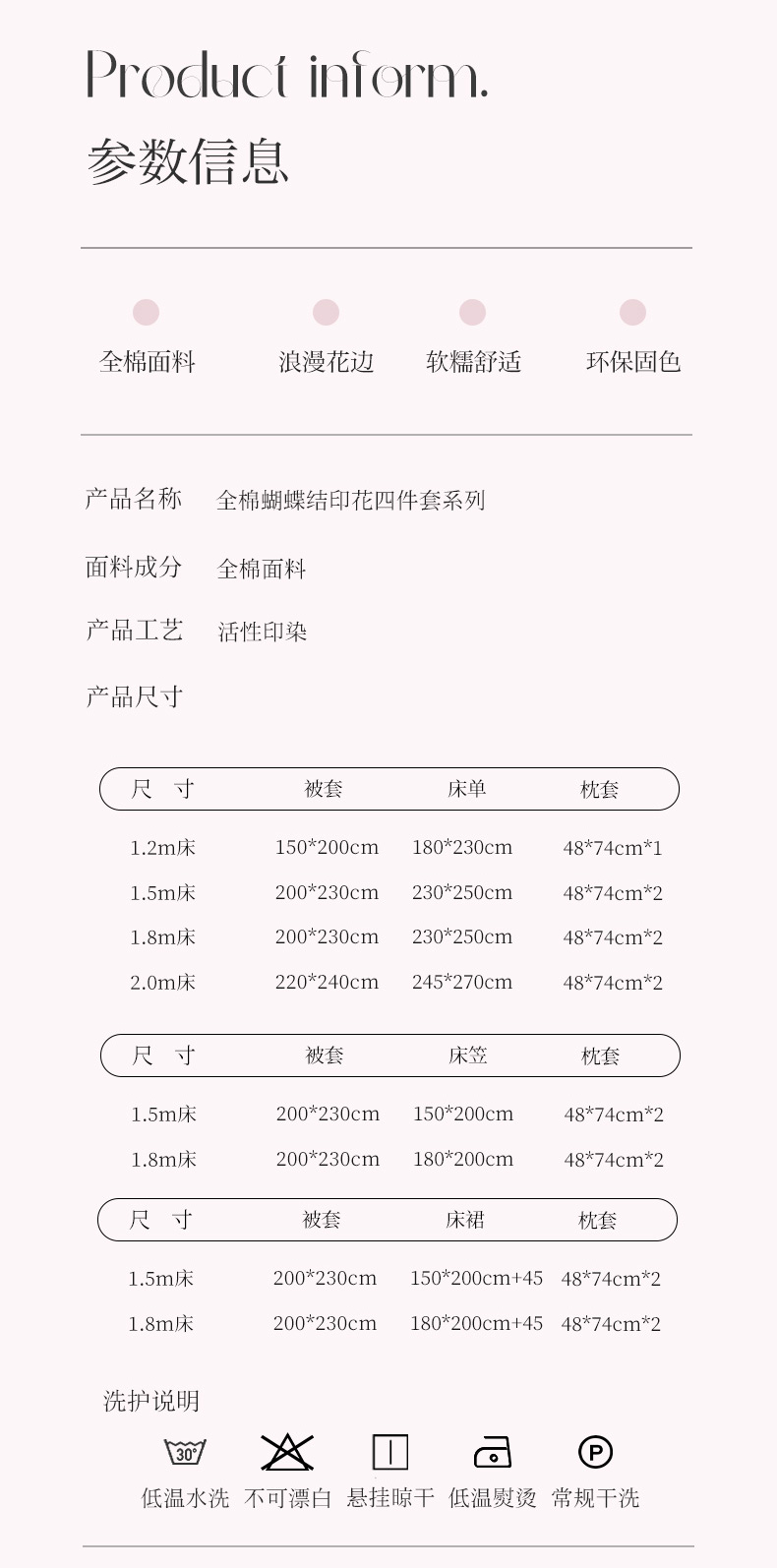 商品名称:瑞莱 2024新款13372舞动花边全棉四件套 梦蝶