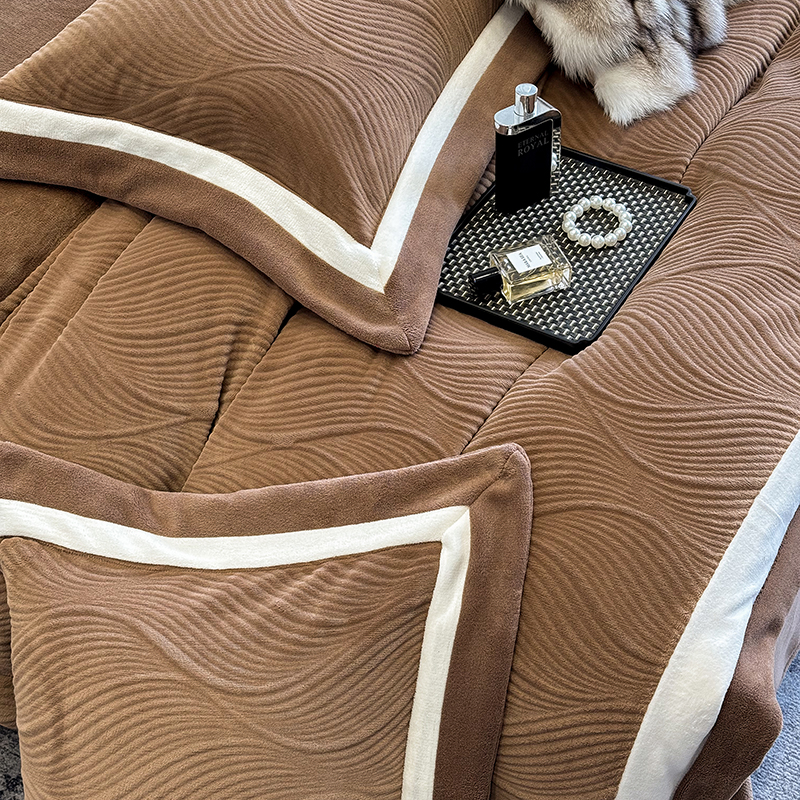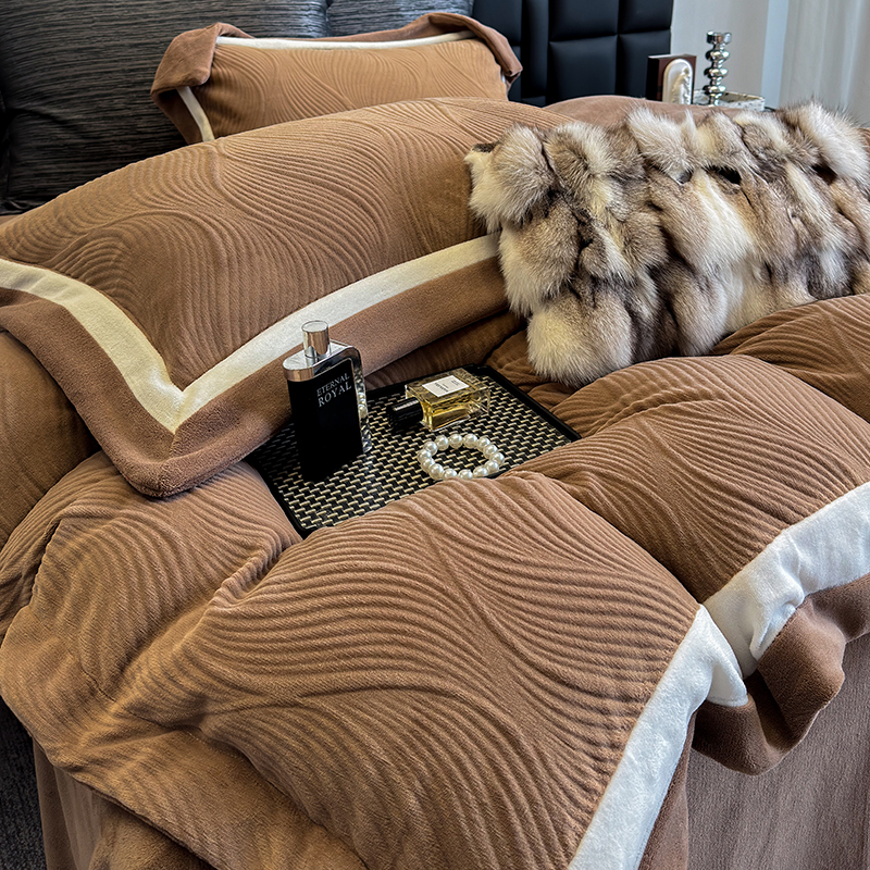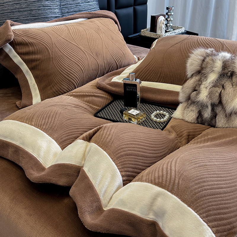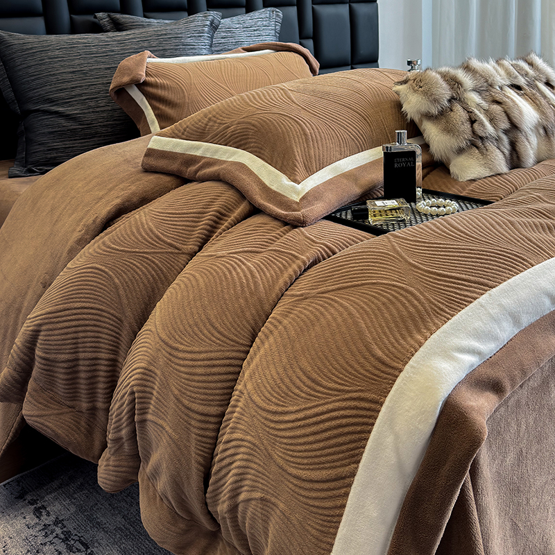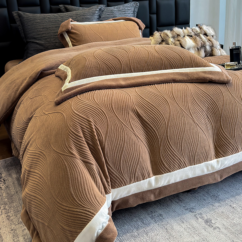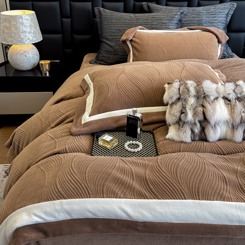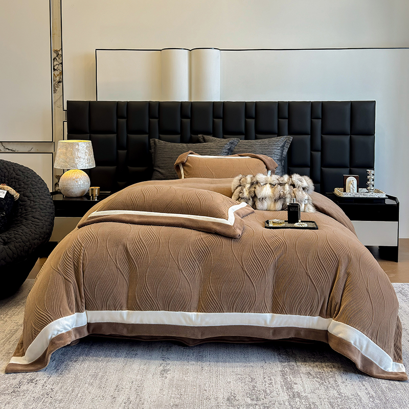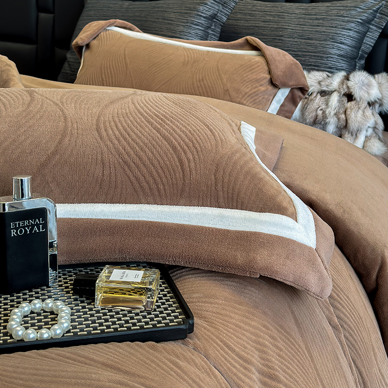 商品名称:若未家居 LOVEWE HOUSE 2025秋冬260克AB版双拼雕花全消光牛奶绒套件--布拉格 布拉格-丝雾棕