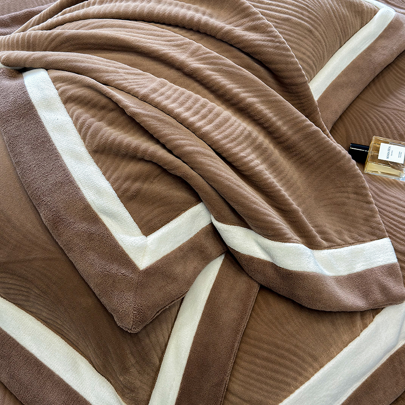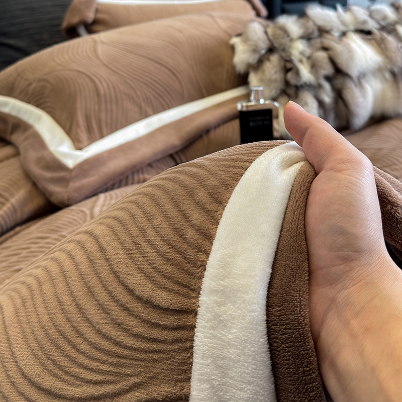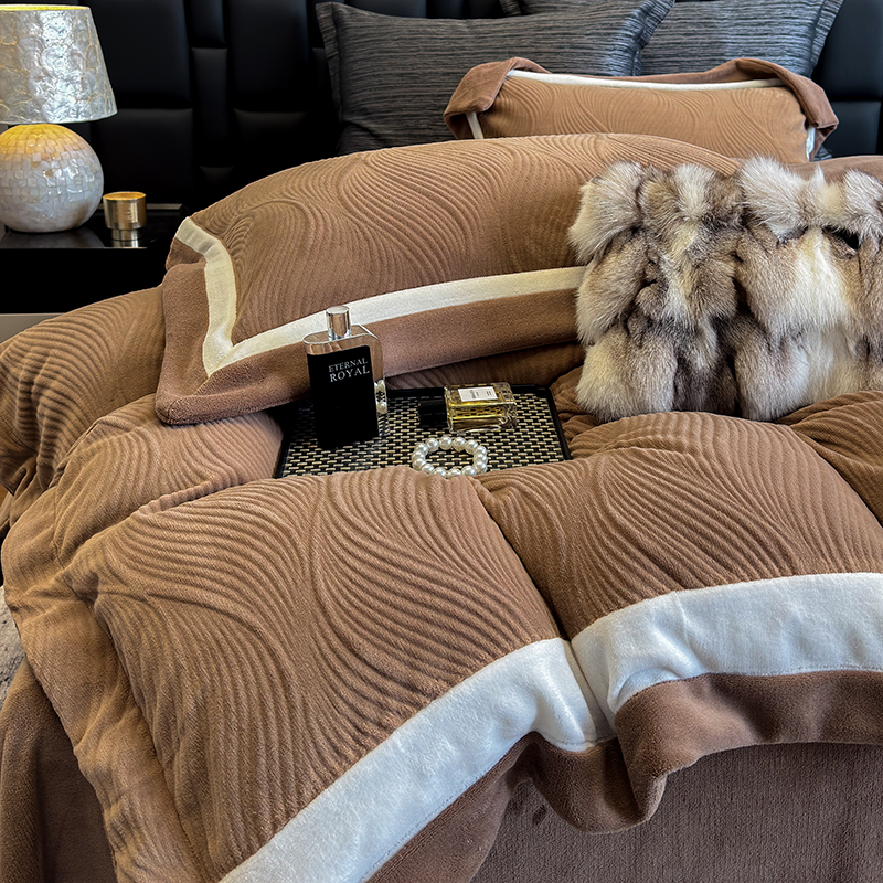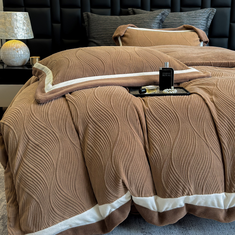 若未家居 LOVEWE HOUSE 2025秋冬260克AB版双拼雕花全消光牛奶绒套件--布拉格 布拉格-丝雾棕