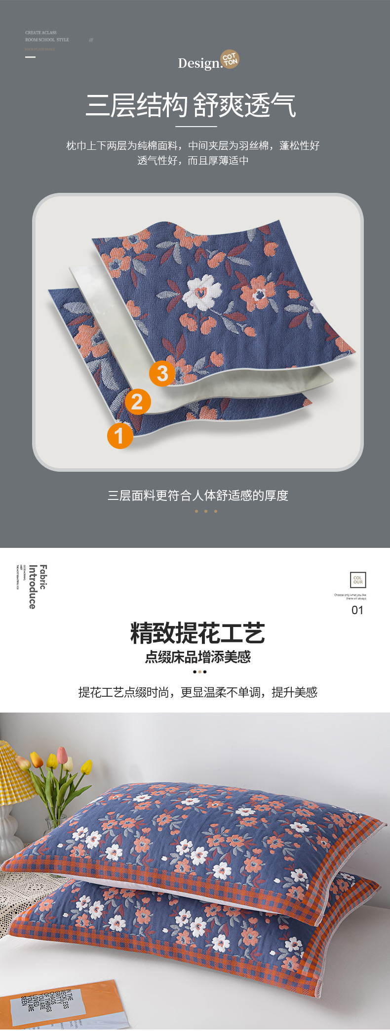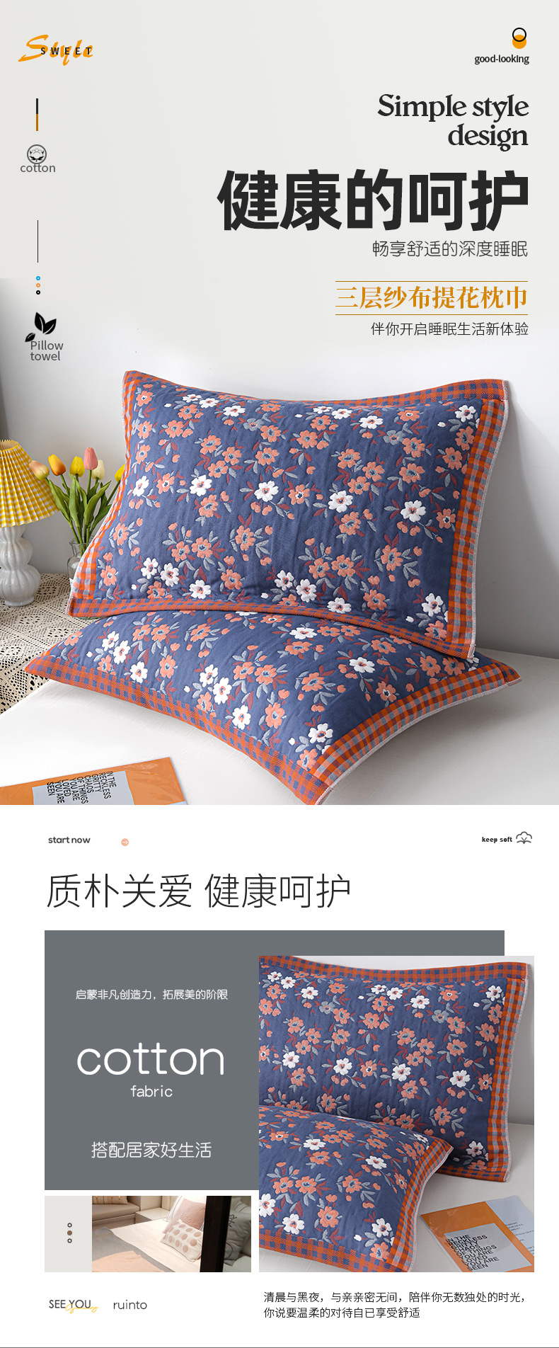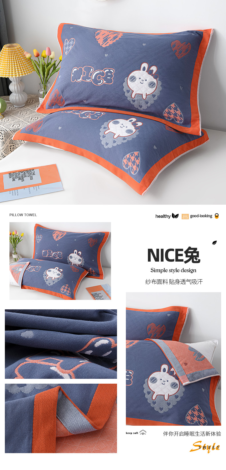 • 91家纺网 家纺一手货源 找家纺 (买家秀)(爆款花型 长期款 不断货)A类抗菌母婴级全棉纯棉三层纱多功能枕巾多层纱布纱巾宽边枕巾 闻香-橘