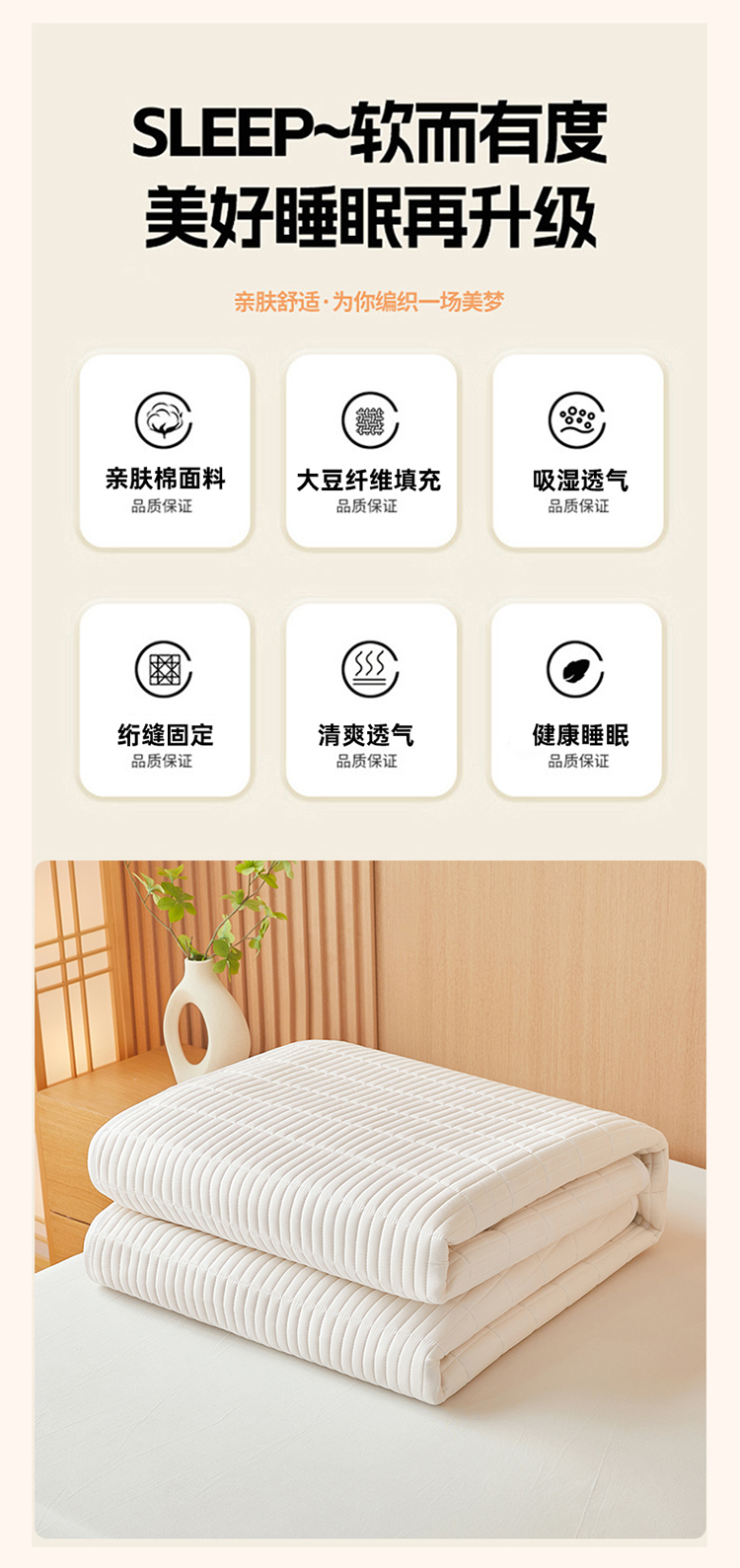 当前位置: 91家纺网 > 商品网购 > 床垫/床褥 > 普通床垫 > 2025春夏新款A类亲肤大豆床垫-简约系列 防水款云朵白-床垫
