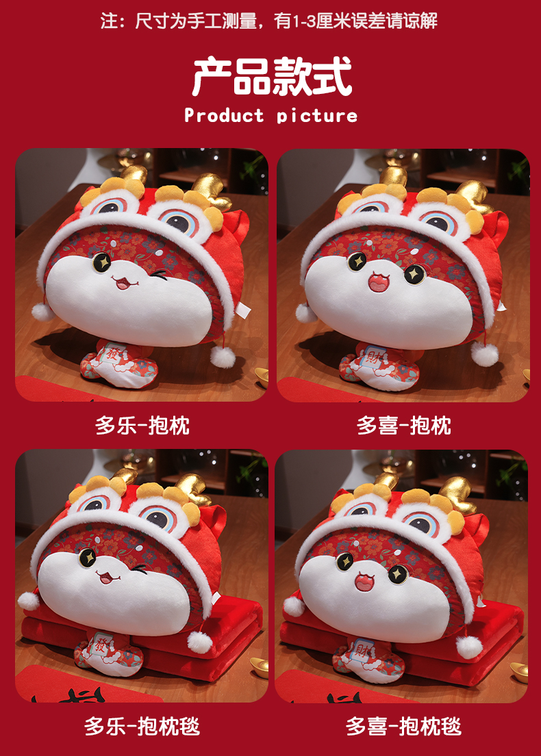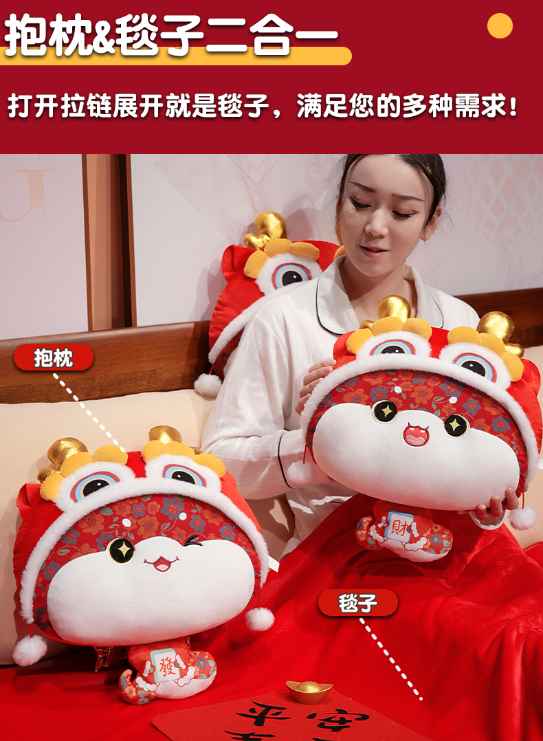 商品名称:仟亿莱 2025新款醒狮福多多二合一抱枕毯 二合一多乐