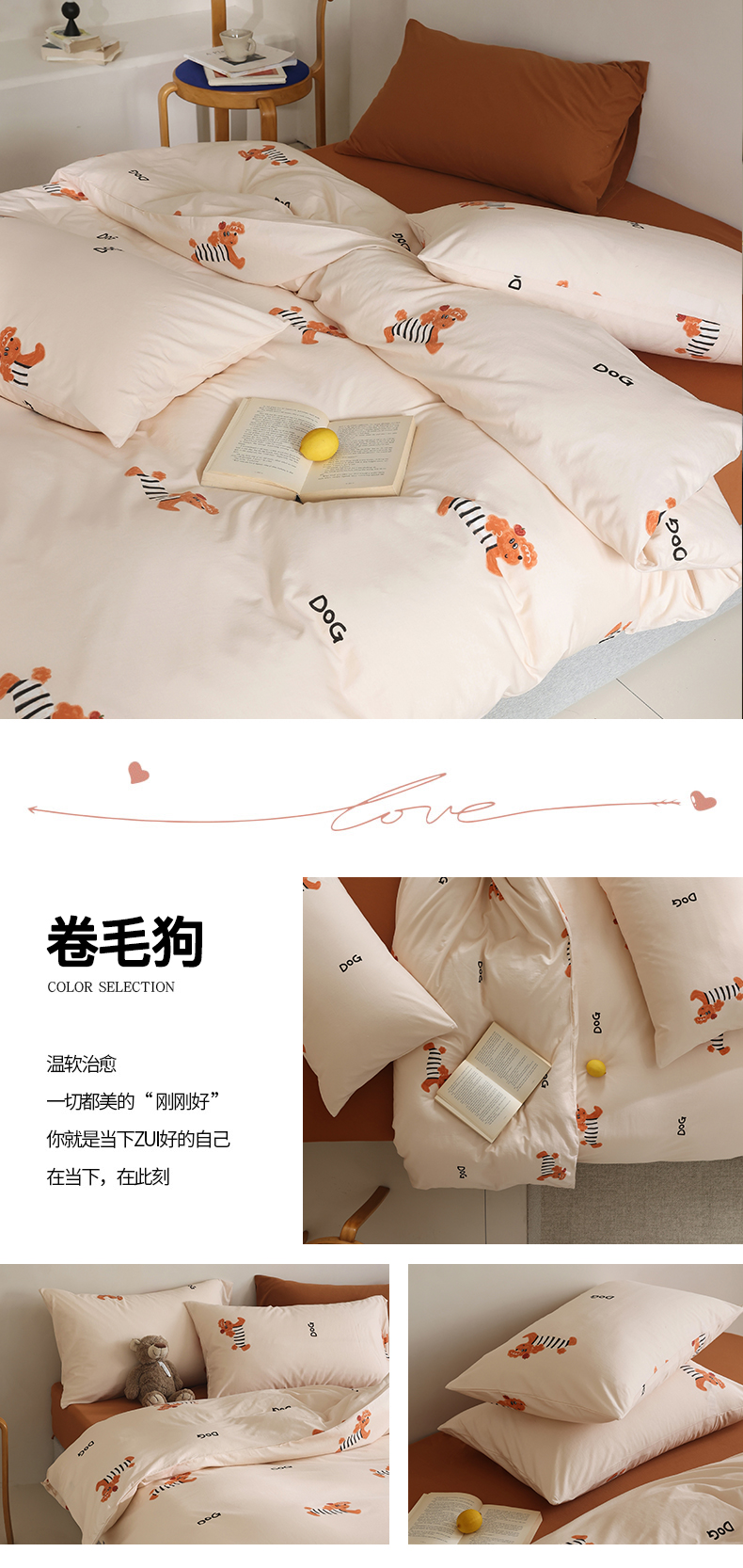 商品名称:绫韵家纺 2025春夏新品母婴A类全棉纯棉针织棉软糯糯小可爱卡通床单款四件套 卷毛狗