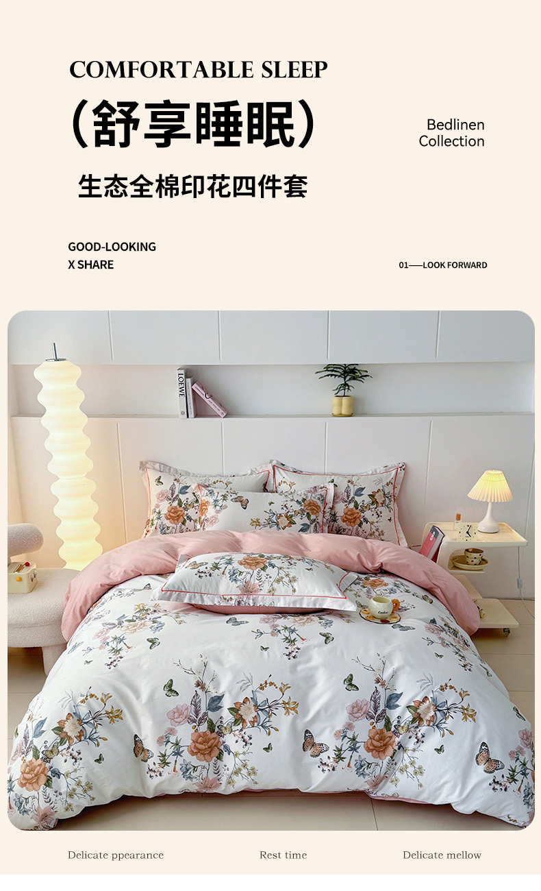 当前位置: 91家纺网 > 商品网购 > 床品套件 > 四件套 > 全棉普通四件套 > 2025新款133X76宽幅全棉纯棉印花系列四件套 蝶恋花-迷情