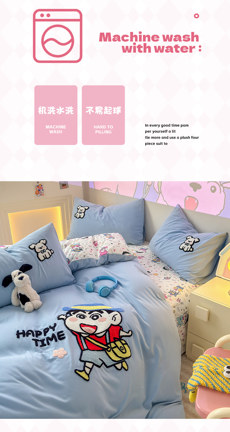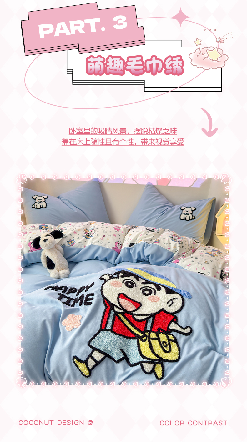 当前位置: 91家纺网 > 商品网购 > 床品套件 > 四件套 > 其它四件套 > 2025新款糯糯棉(110克)大版卡通毛巾绣四件套(提供买家绣)-场景二 原野新之助