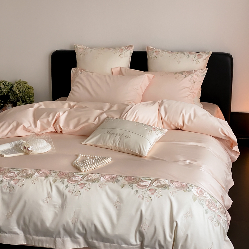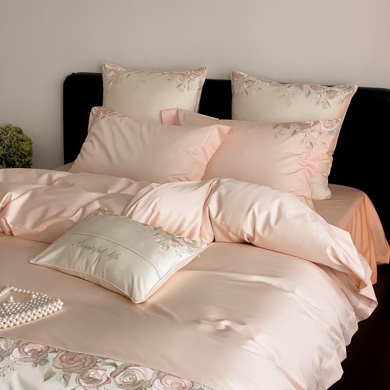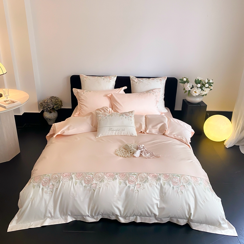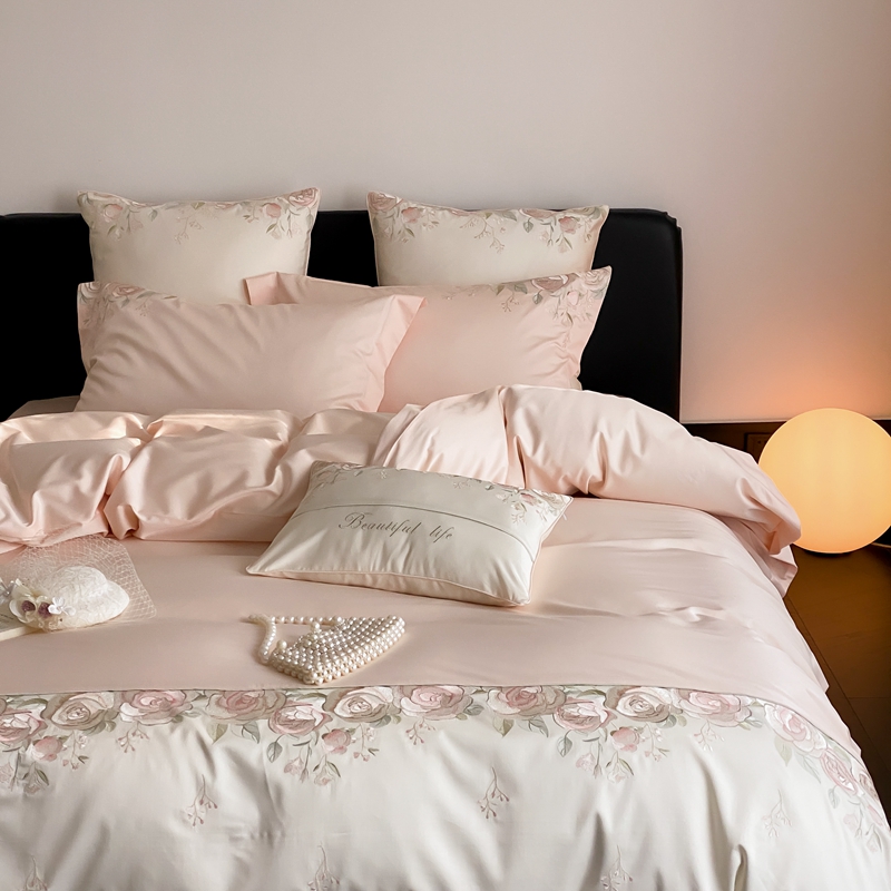 2025新款100支全棉四件套-玫瑰物语 粉色