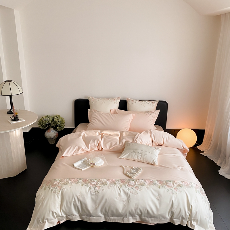 (总)MIU缪家居 2025春夏新款60支兰精天丝四件套-爱莎,爱莎-浅粉,爱莎-乳白