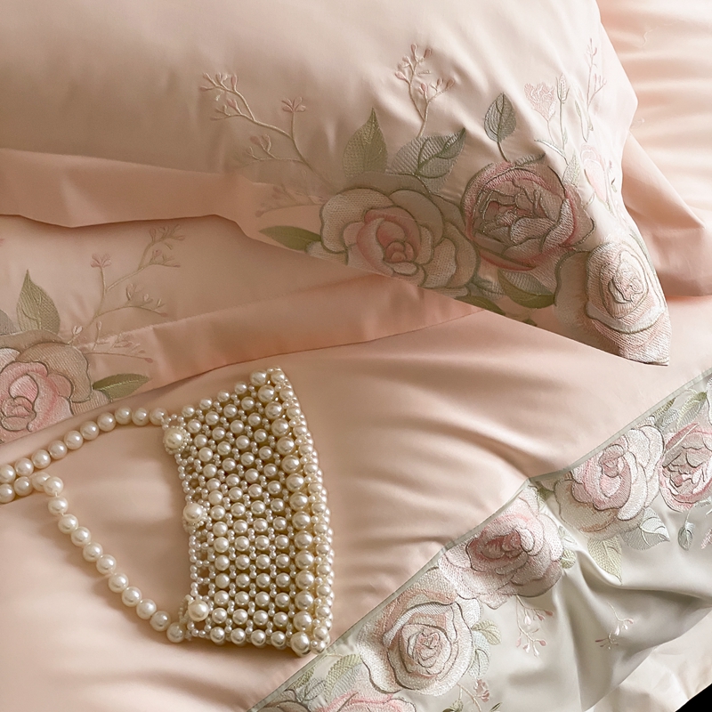 商品名称:2025新款100支全棉四件套-玫瑰物语 粉色