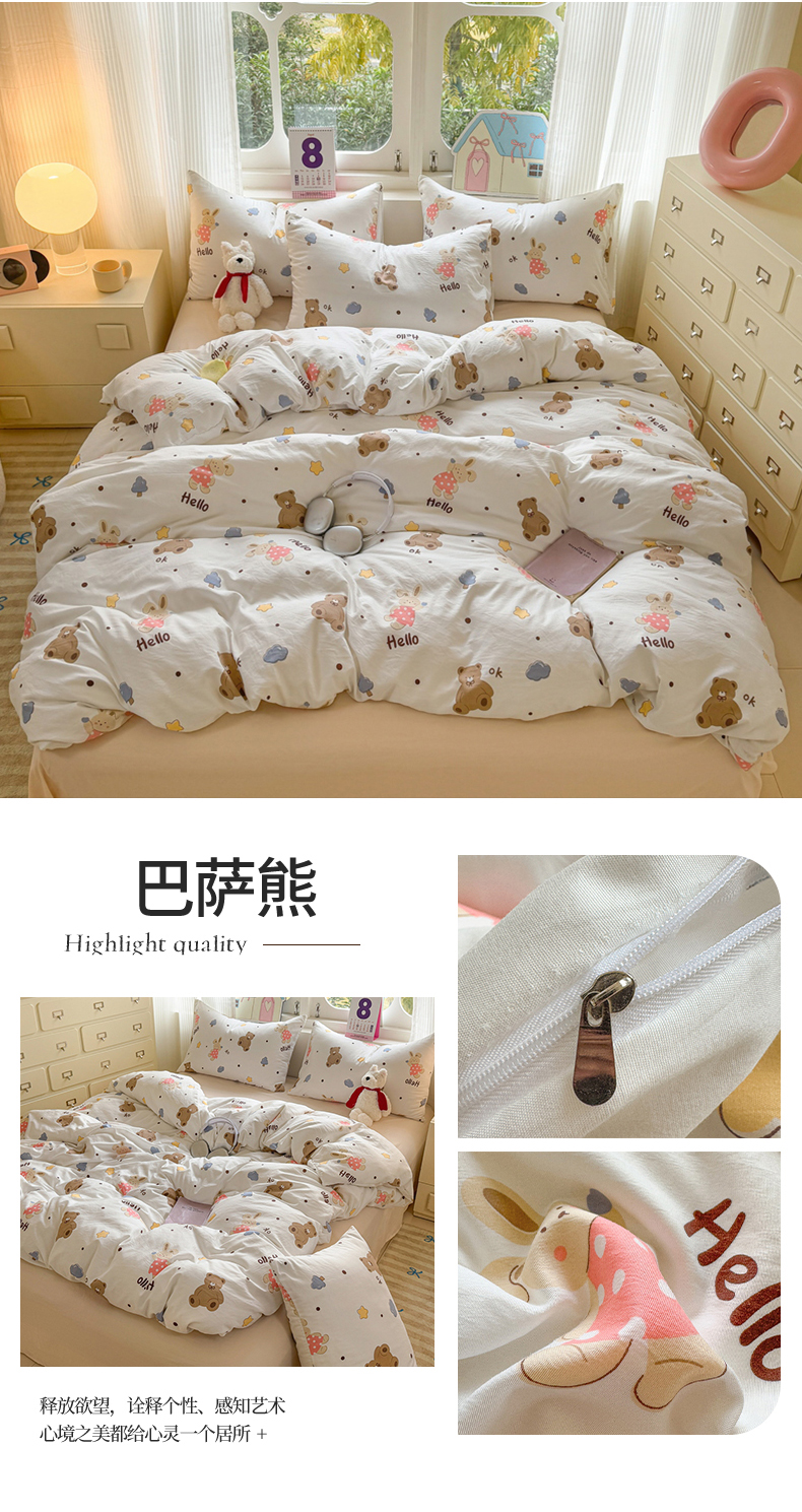 当前位置: 91家纺网 > 商品网购 > 床品套件 > 四件套 > 水洗棉四件套 > 温眠 2025新款亲肤柔软卡通印花水洗棉四件套 巴萨熊