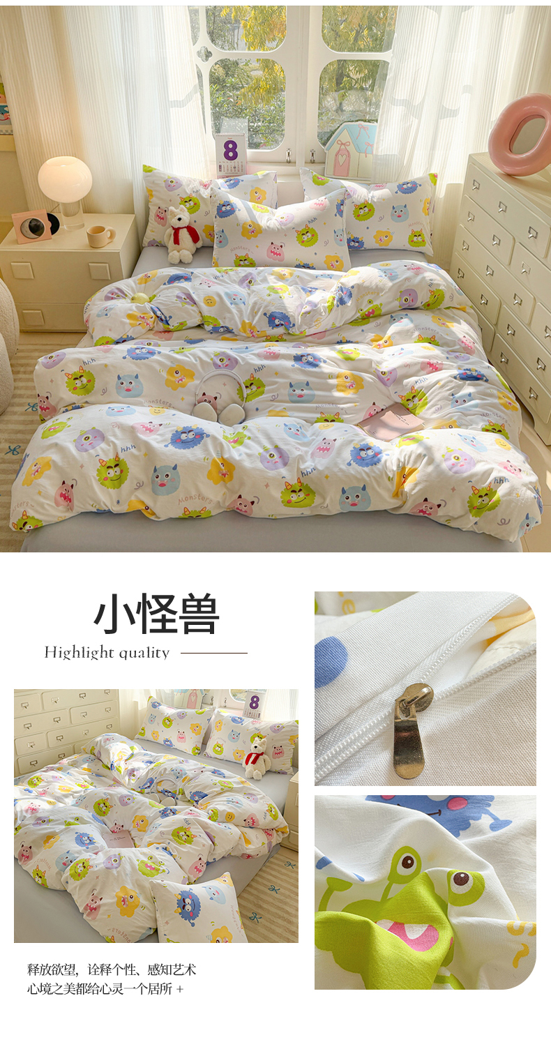 当前位置: 91家纺网 > 商品网购 > 床品套件 > 四件套 > 水洗棉四件套 > 温眠 2025新款亲肤柔软卡通印花水洗棉四件套 小怪兽