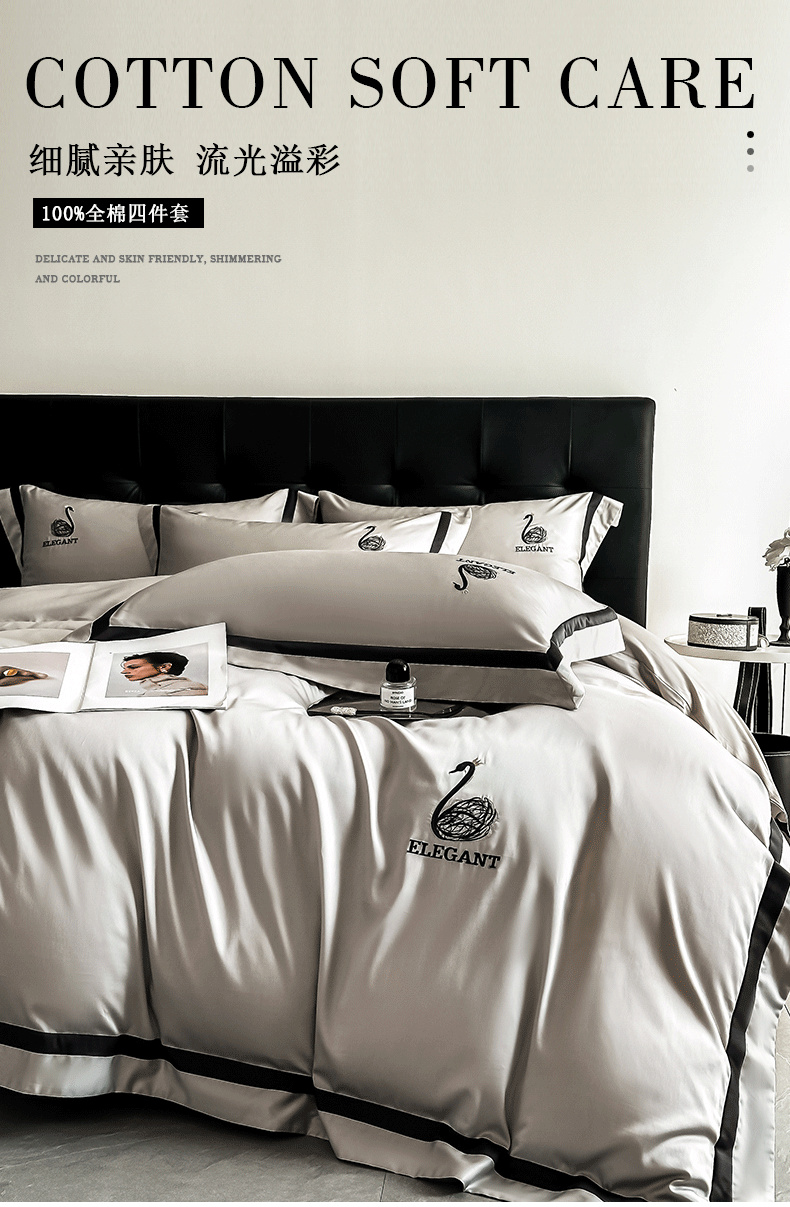 商品名称:618家纺 2025新款A类60S100支全棉纯棉四件套-天鹅之舞 天鹅之舞-银灰