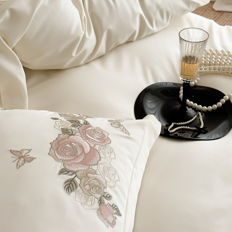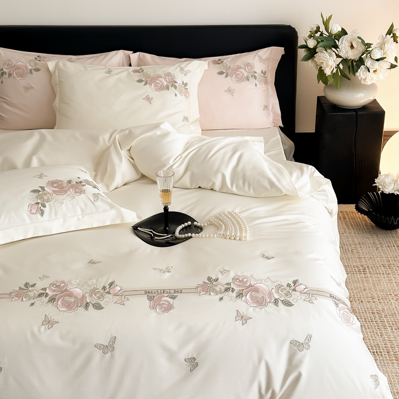(总)佳汐蓝家纺 2025新款全棉刺绣花边四件套-妮娅,妮娅-粉色,妮娅-米白色,妮娅-香槟色,妮娅-紫色