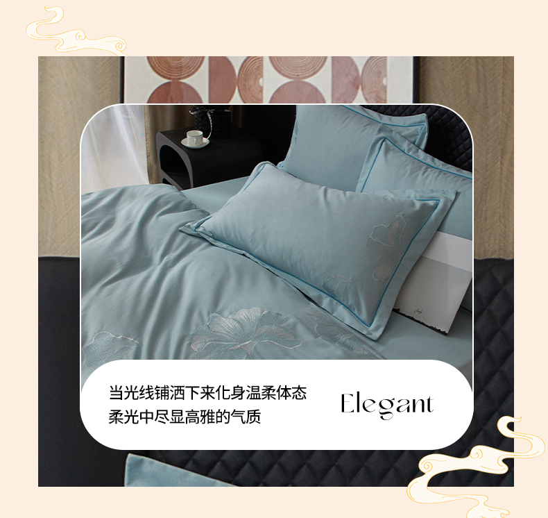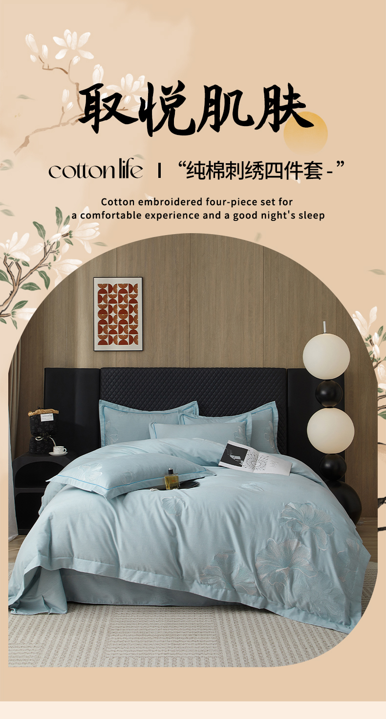 商品名称:雲归梦 2025新款全棉加厚磨毛绣花宽边工艺四件套-璀璨人生 璀璨人生-兰绿