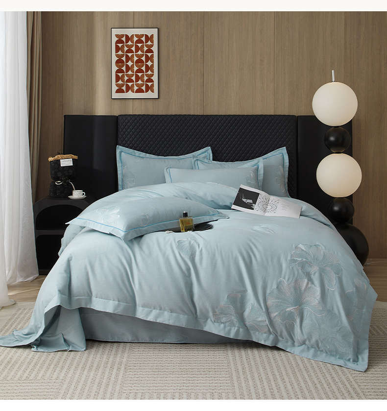 雲归梦 2025新款全棉加厚磨毛绣花宽边工艺四件套-璀璨人生 璀璨人生-兰绿