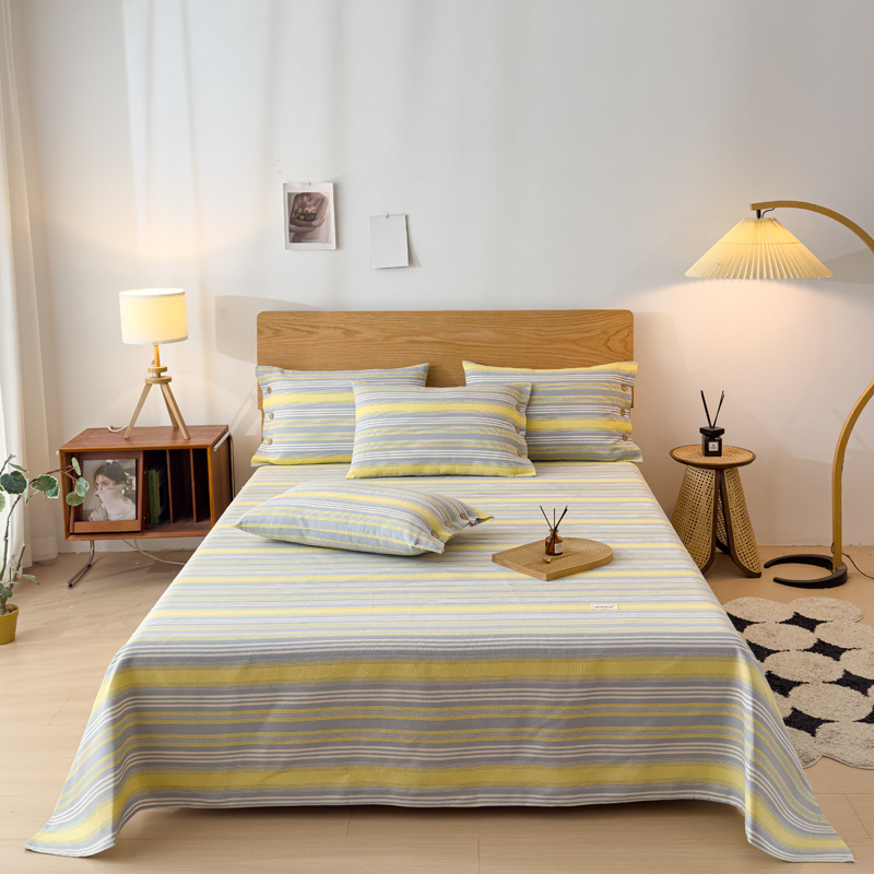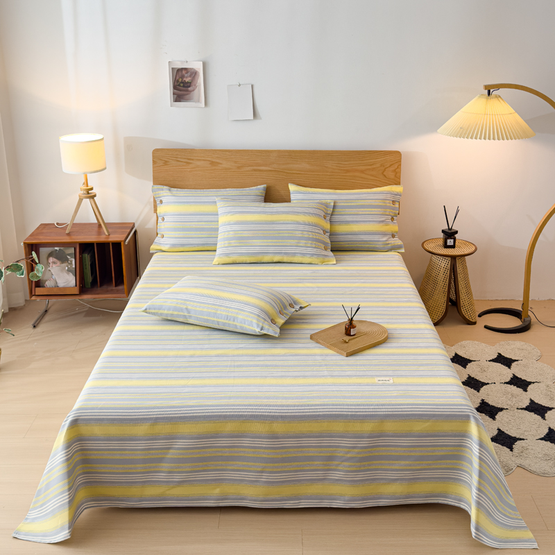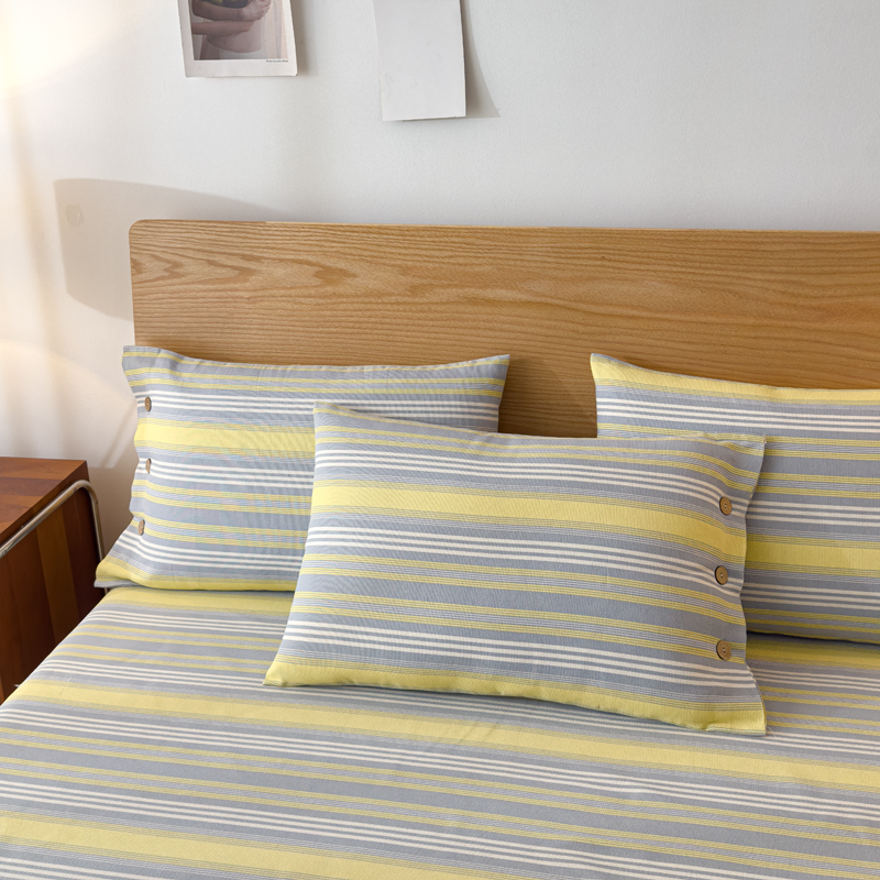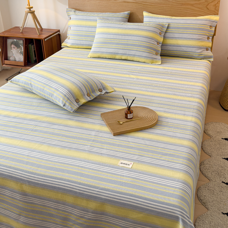 仟网汇 2025新款无印纽扣原棉老粗布三件套 跃动黄