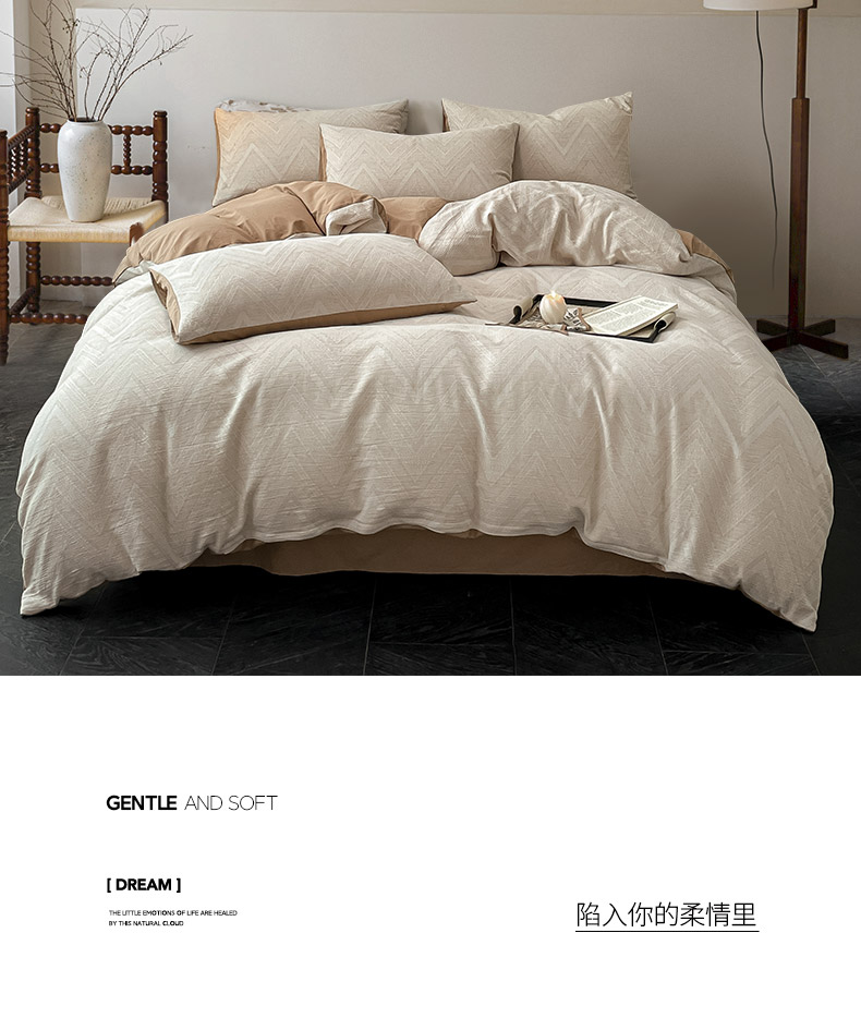 商品名称:ab家纺 2025新款全棉三层纱小提花四件套 伯爵-咖