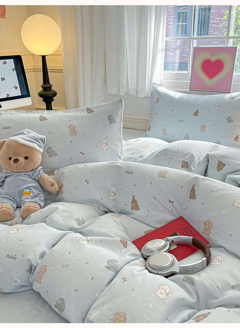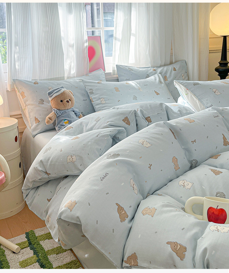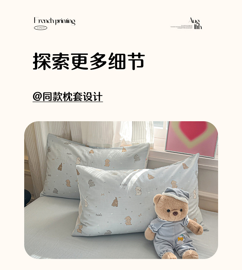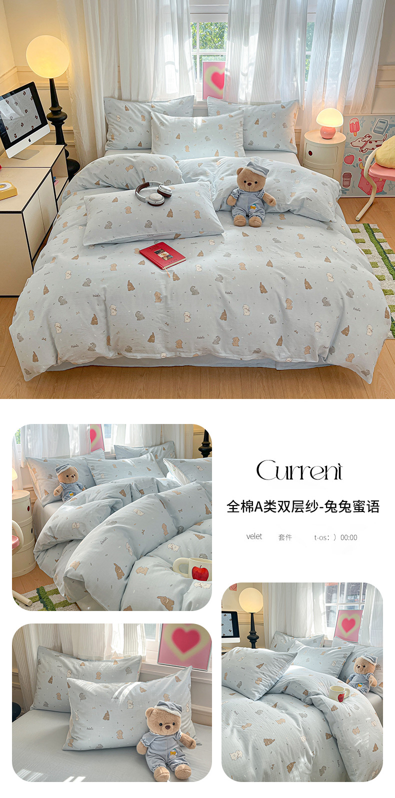 当前位置: 91家纺网 > 商品网购 > 床品套件 > 四件套 > 博雅 2025新款全棉A类双层纱四件套 兔兔蜜语
