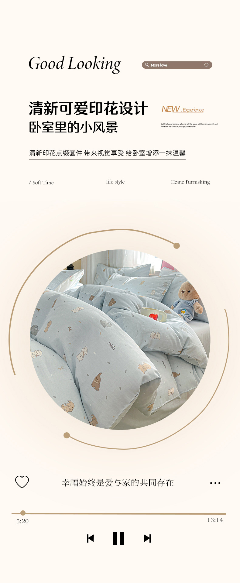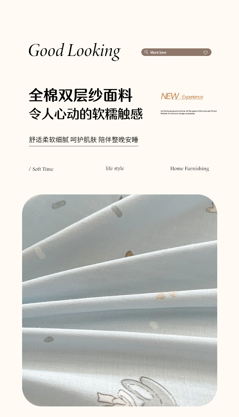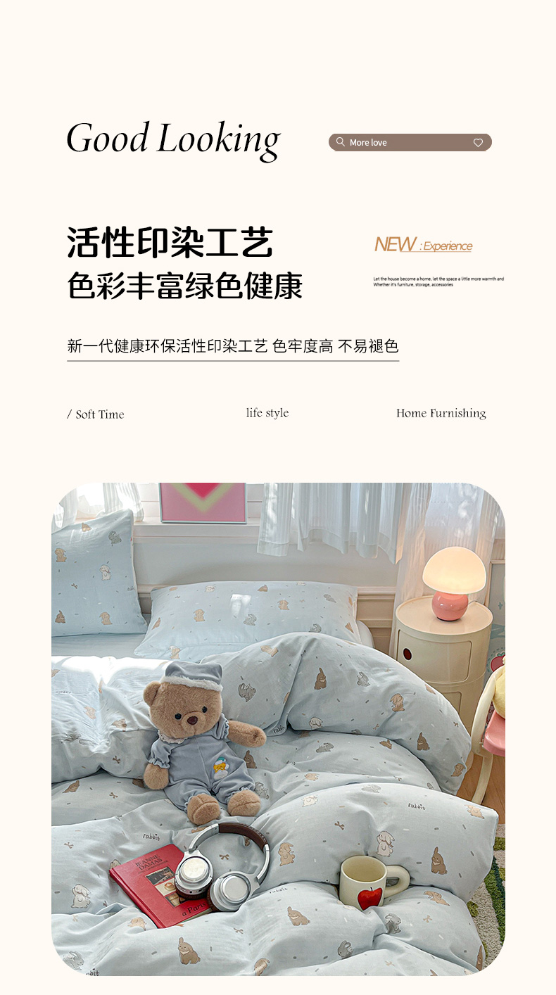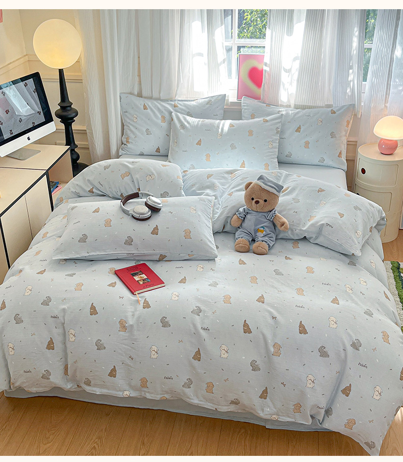 当前位置: 91家纺网 > 商品网购 > 床品套件 > 四件套 > 博雅 2025新款全棉A类双层纱四件套 兔兔蜜语