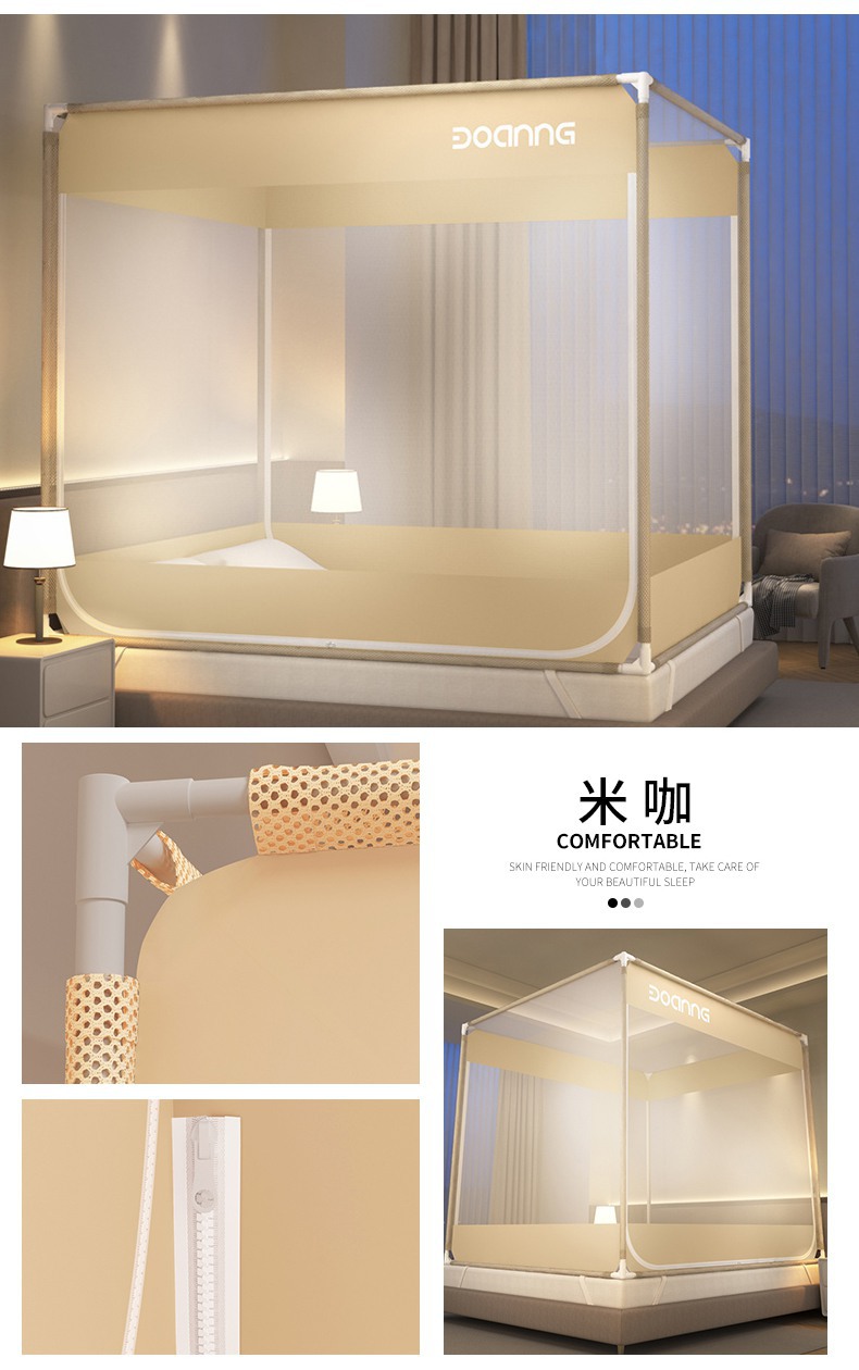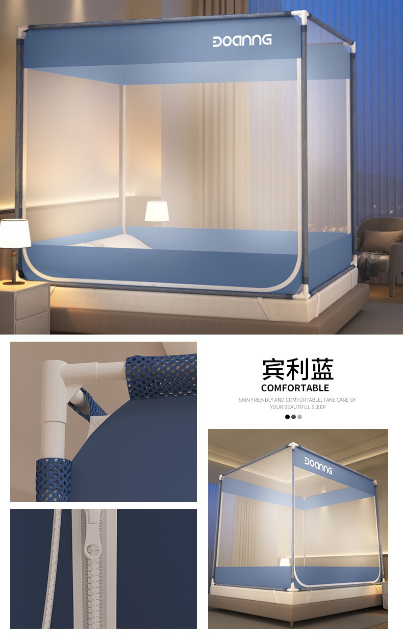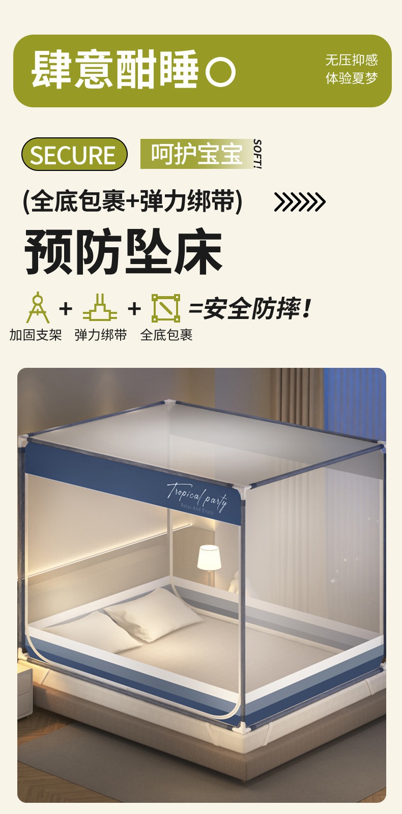 商品名称:青竹苑 2025新款双门全底外穿坐床式蚊帐儿童防摔防蚊拉链方帐 几何图案-梦光蓝