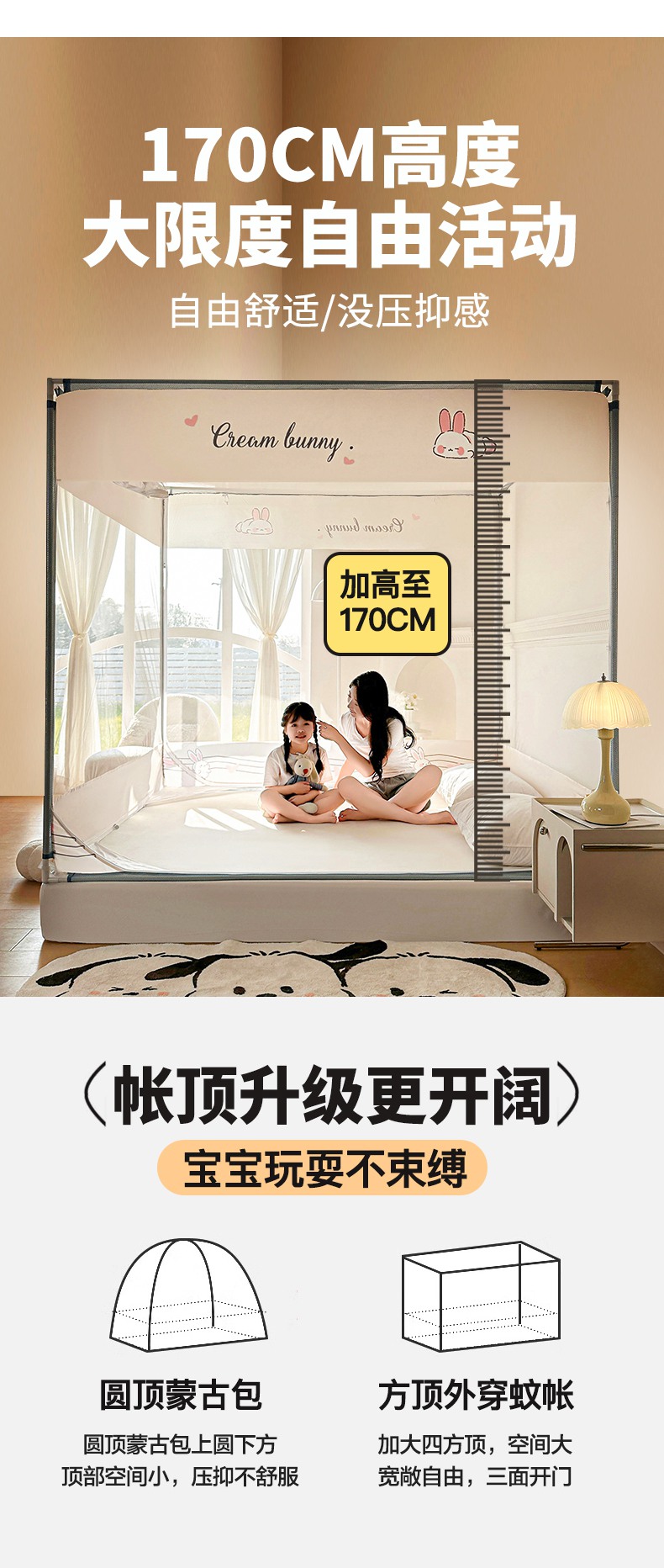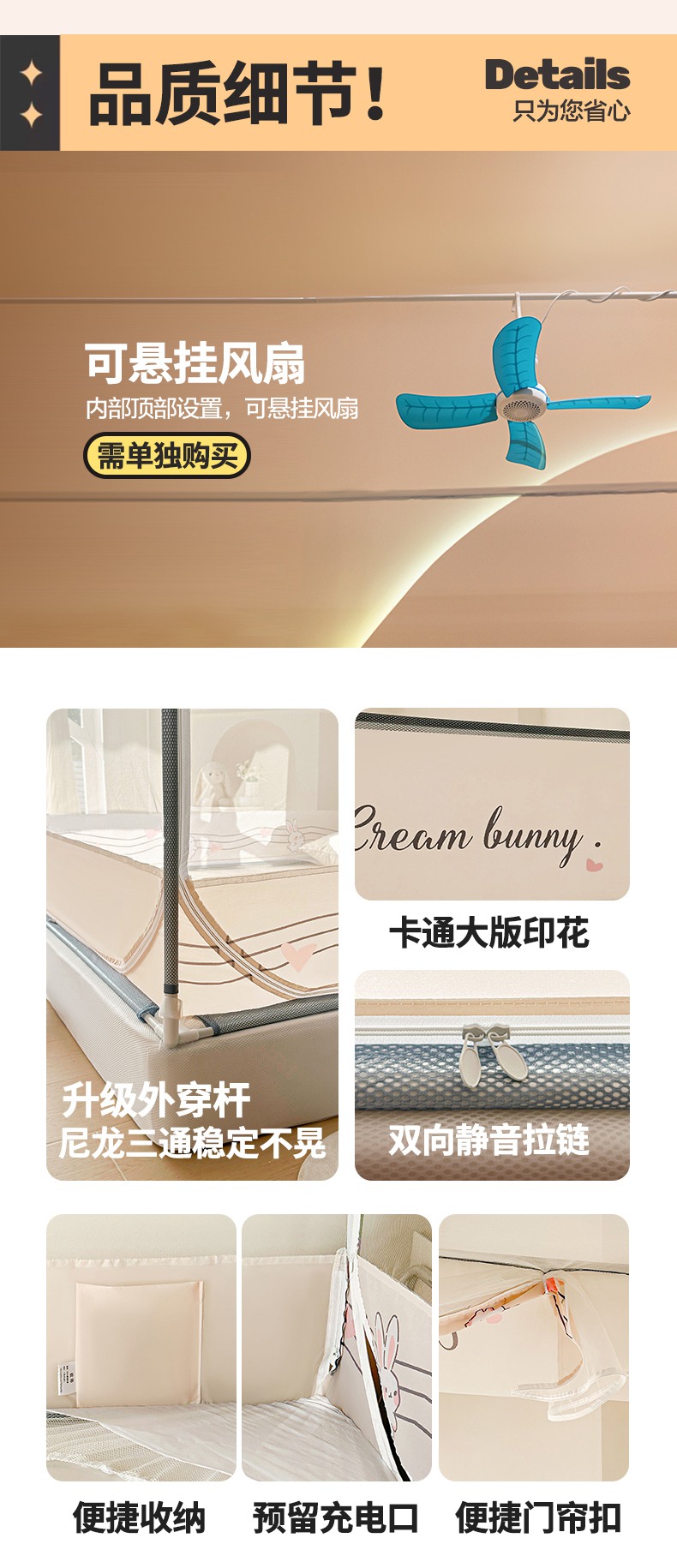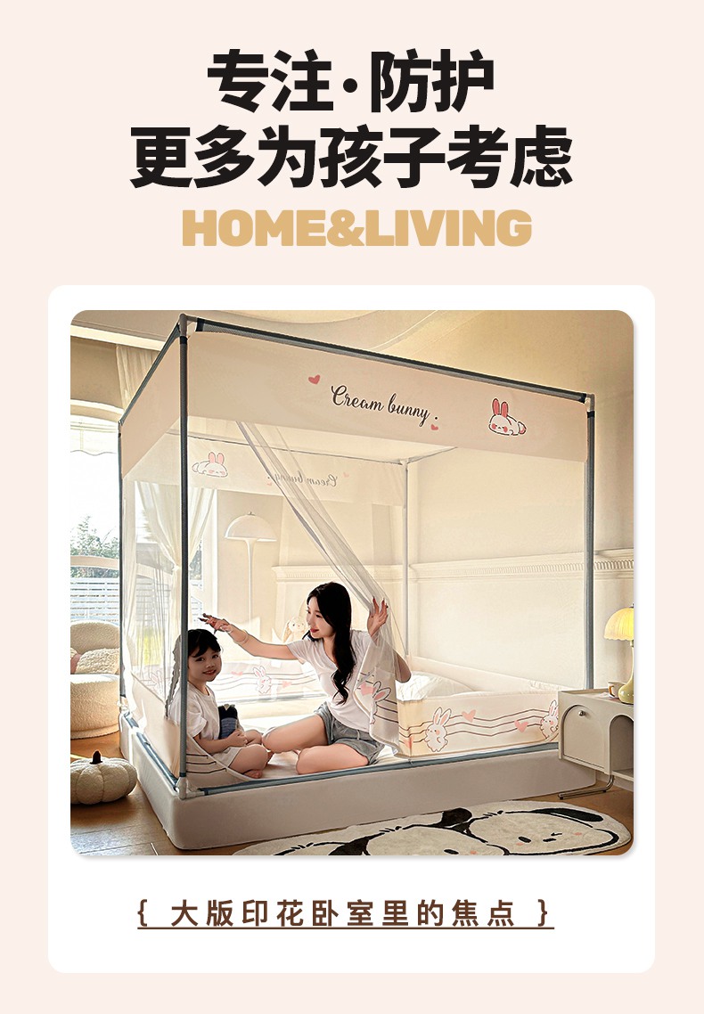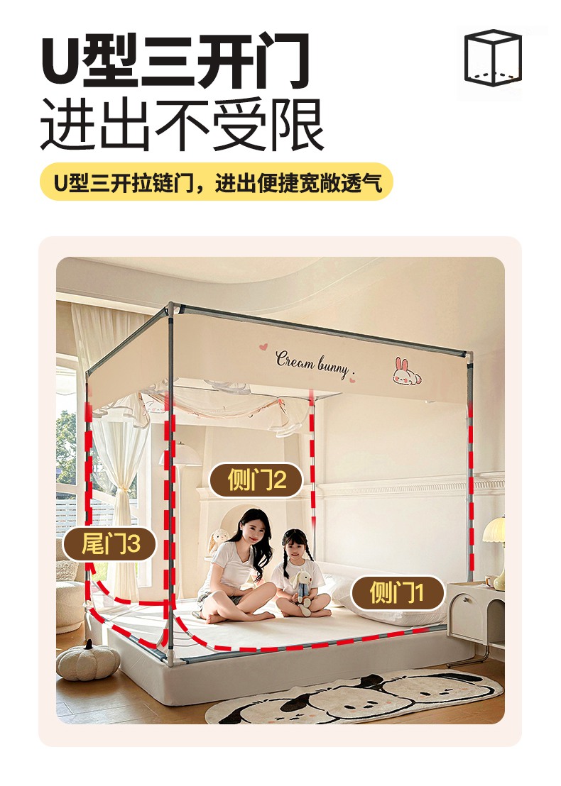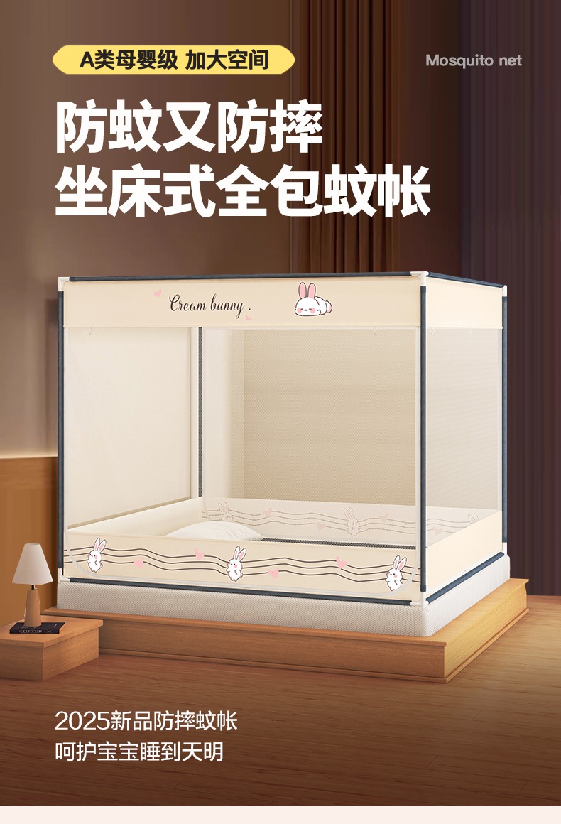 当前位置: 91家纺网 > 商品网购 > 床上用品 > 蚊帐 > 坐床式蚊帐 > 青竹苑 2025新款三门大版上下布印花外穿坐床蚊帐床笠式防摔方帐 乖乖兔