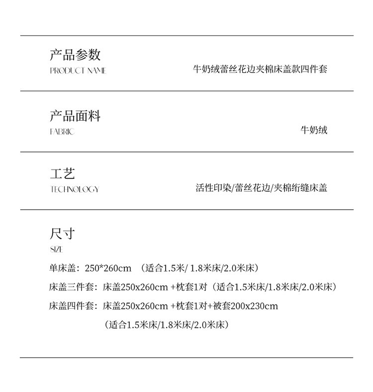 2.0M床盖四件套(被套200*230+床盖+枕套一对)