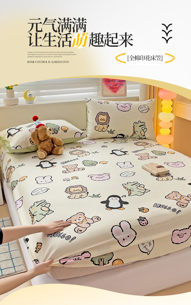 名兮家居 2025新款13372全棉印花四件套单品系列-单床笠 动物世界