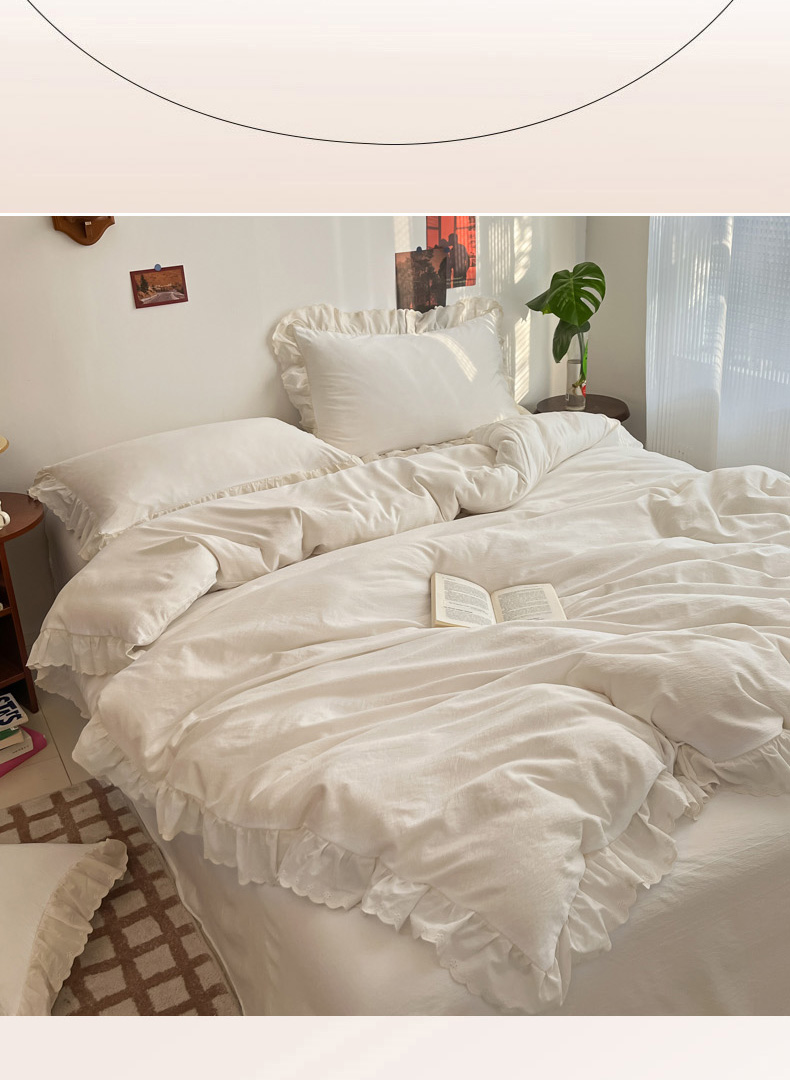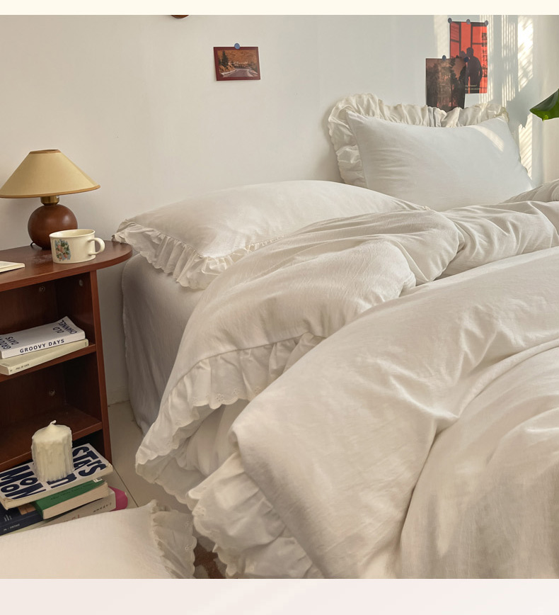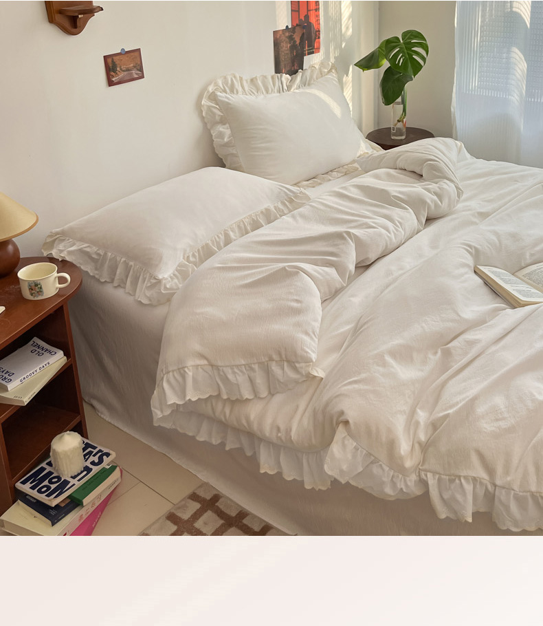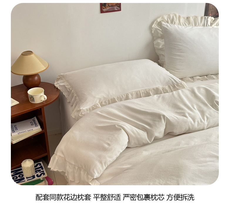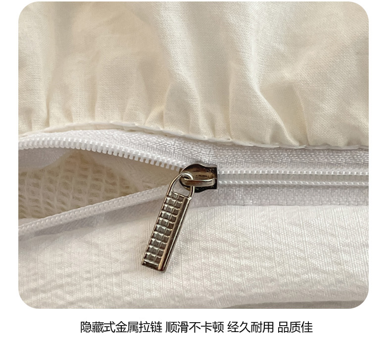 总慕澄家纺 2022新款韩版泡泡纱花边四件套(手机实拍),公主粉,极致灰,梨花白,梨花白+灰,奶油黄,宁静蓝,优雅紫