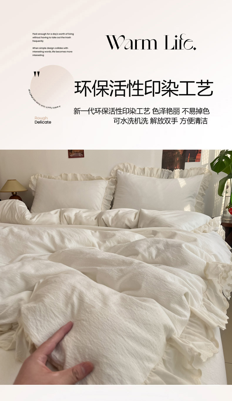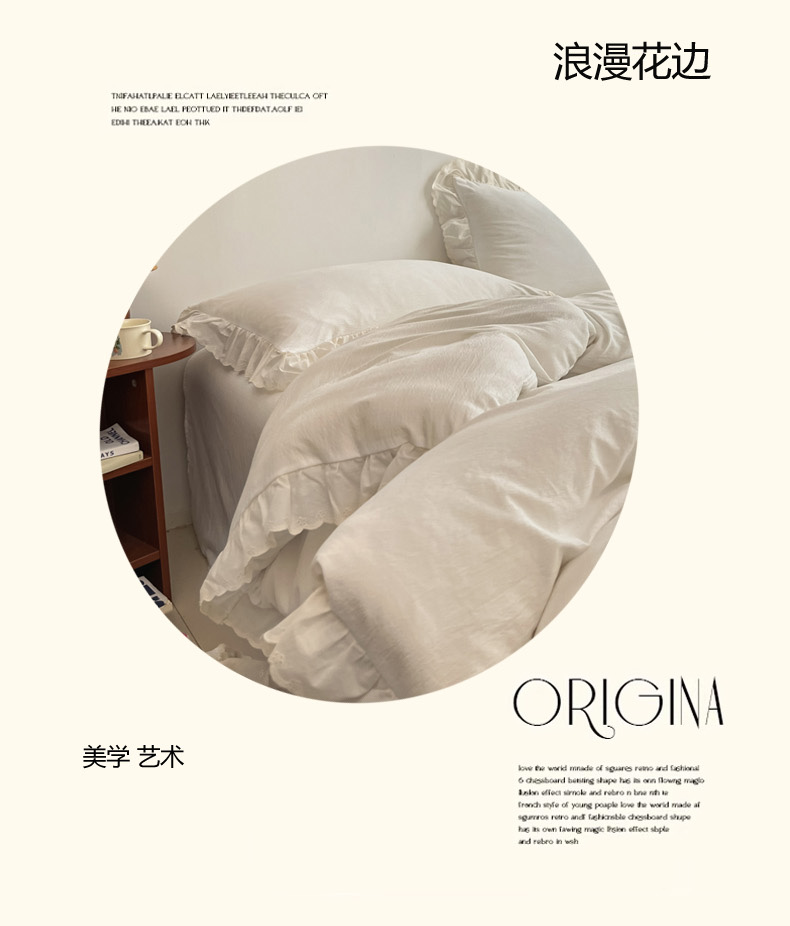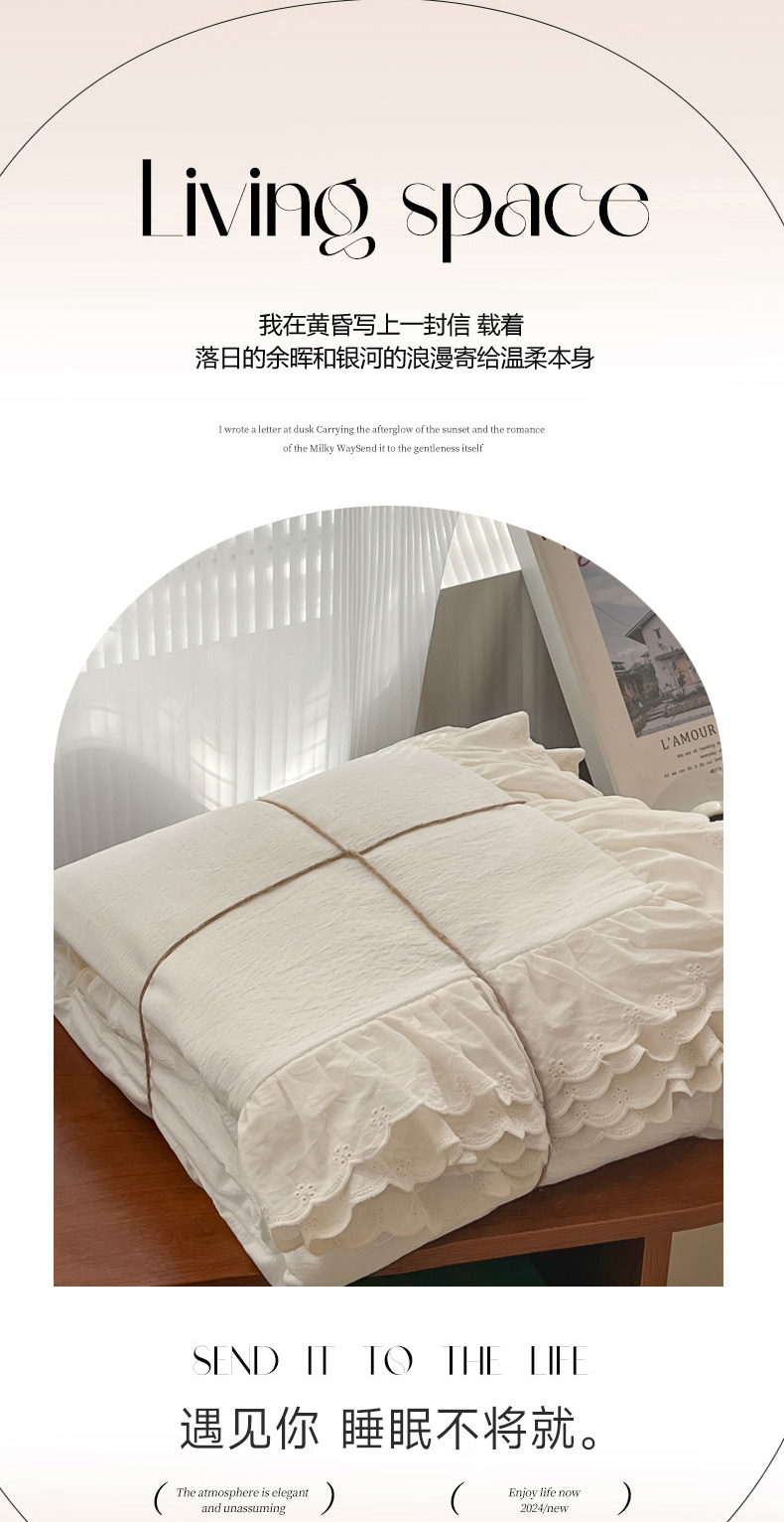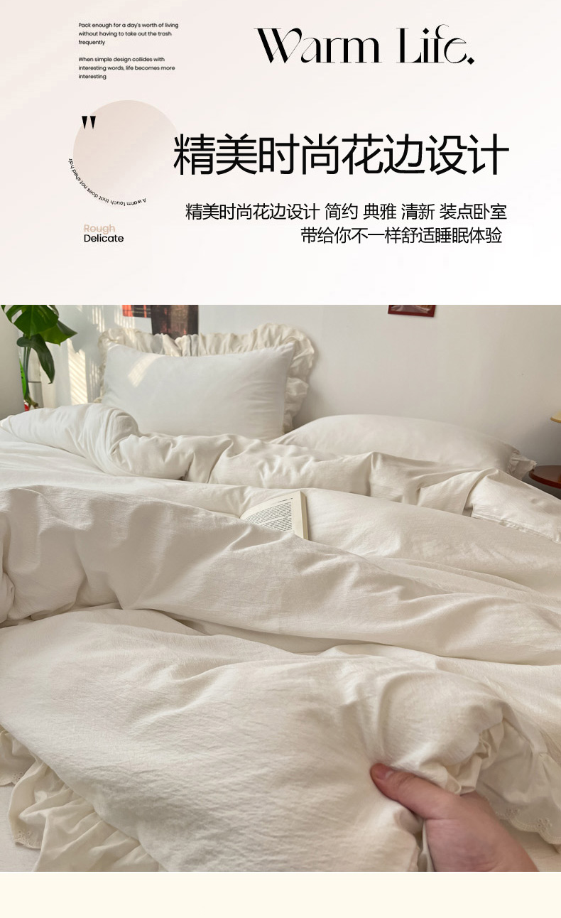 总慕澄家纺 2022新款韩版泡泡纱花边四件套(手机实拍),公主粉,极致灰,梨花白,梨花白+灰,奶油黄,宁静蓝,优雅紫