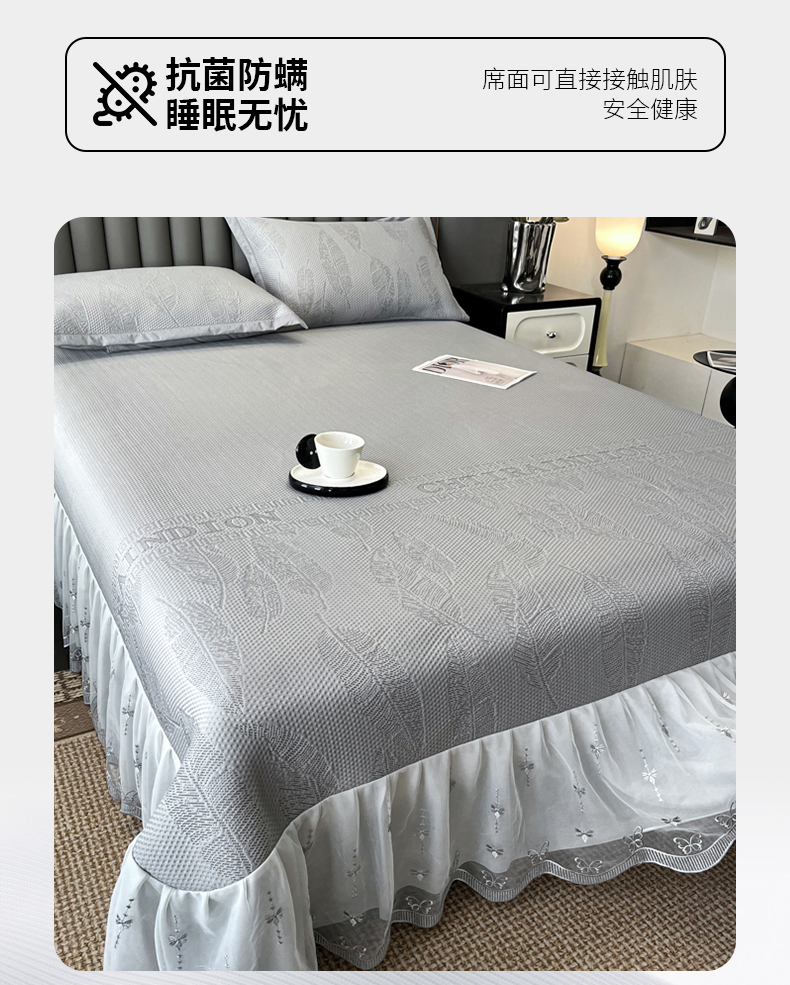 (总)阿牛席业 2025新款冰藤凉席系列冰藤绣花韵雅席,韵雅-粉,韵雅-粉床笠款,韵雅-灰,韵雅-灰床笠款,韵雅-蓝,韵雅-蓝床笠款