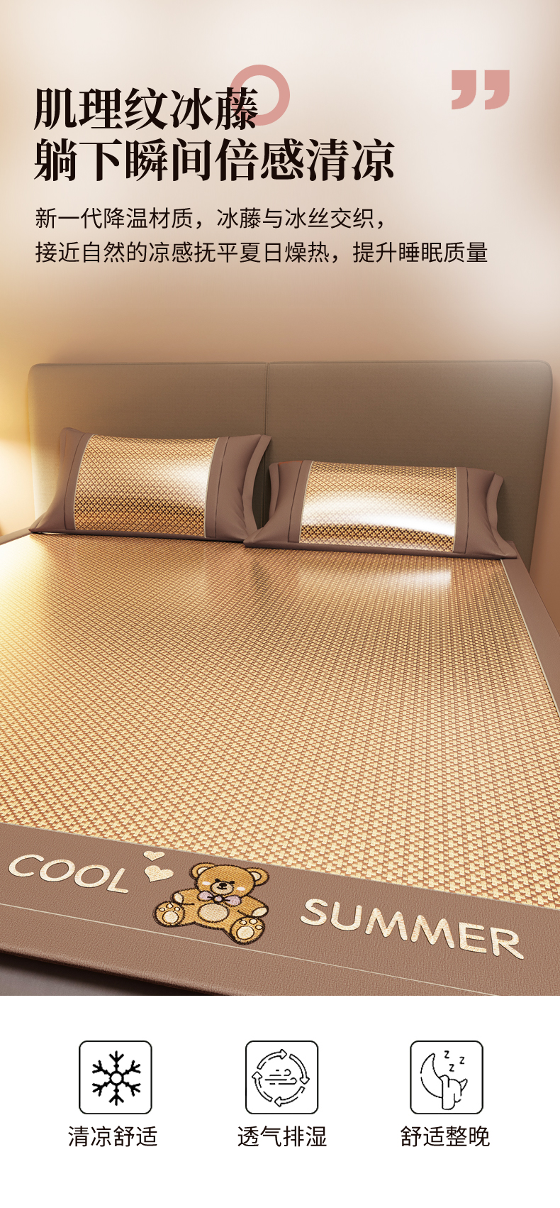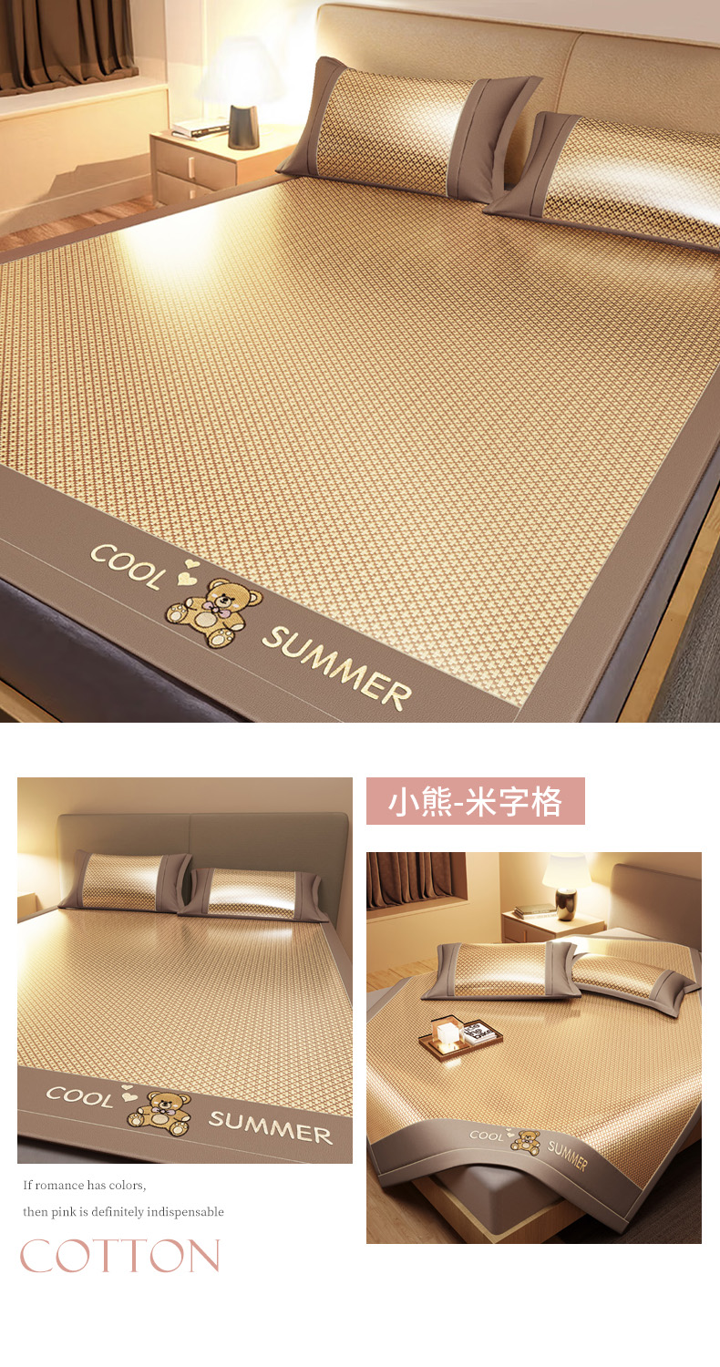 (总)阿牛席业 2025新款冰藤凉席系列冰藤完美-小熊席,完美生活-咖色,小熊条席-灰色,小熊条席-金色,小熊条席-咖色,小熊-灰床笠,小熊-金床笠,小熊-咖床笠
