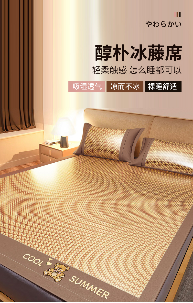 商品名称:阿牛席业 2025新款冰藤凉席系列冰藤完美-小熊席 小熊条席-金色