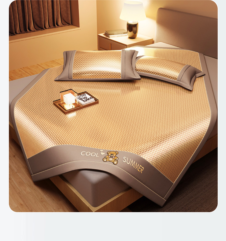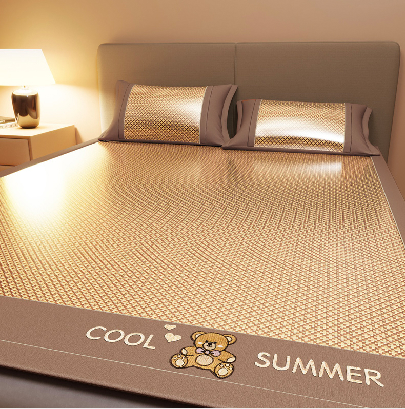 阿牛席业 2025新款冰藤凉席系列冰藤完美-小熊席 小熊条席-金色