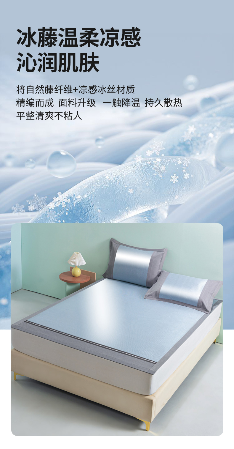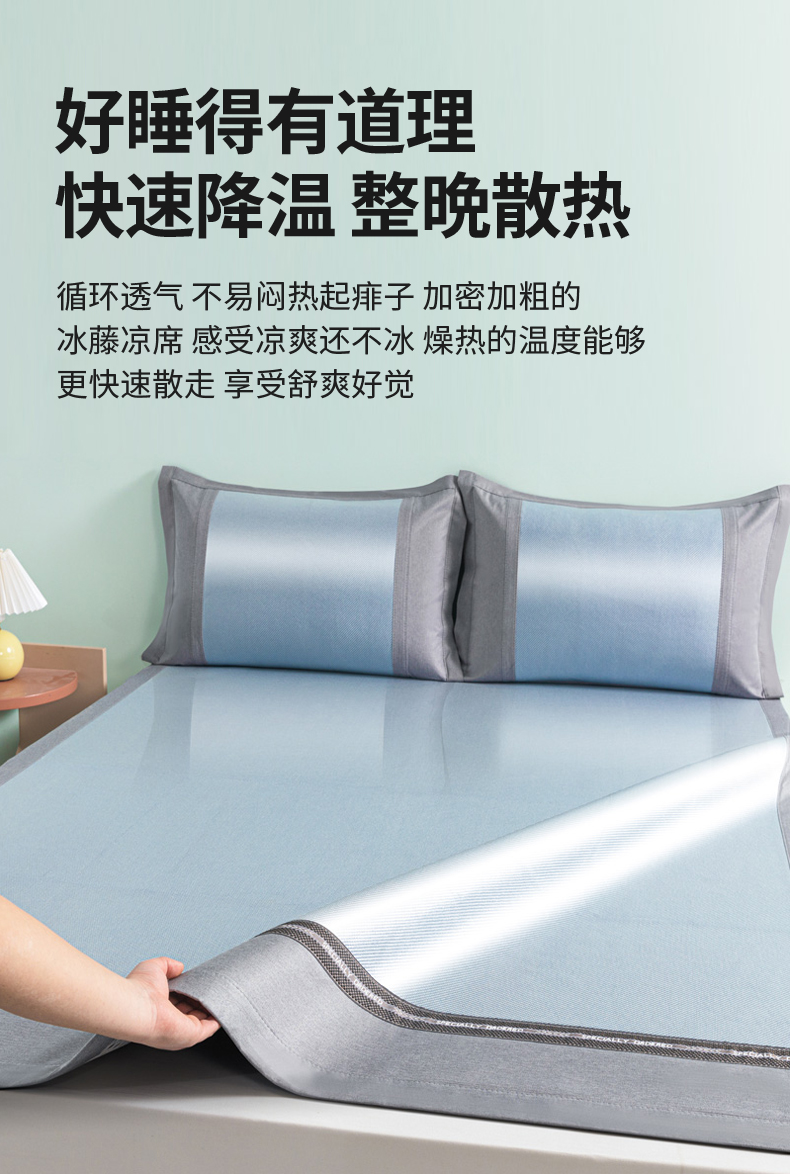 (总)阿牛席业 2025新款冰藤凉席系列冰藤抑菌凉席,抑菌冰藤席-灰【条席款】,抑菌冰藤席-蓝【条席款】