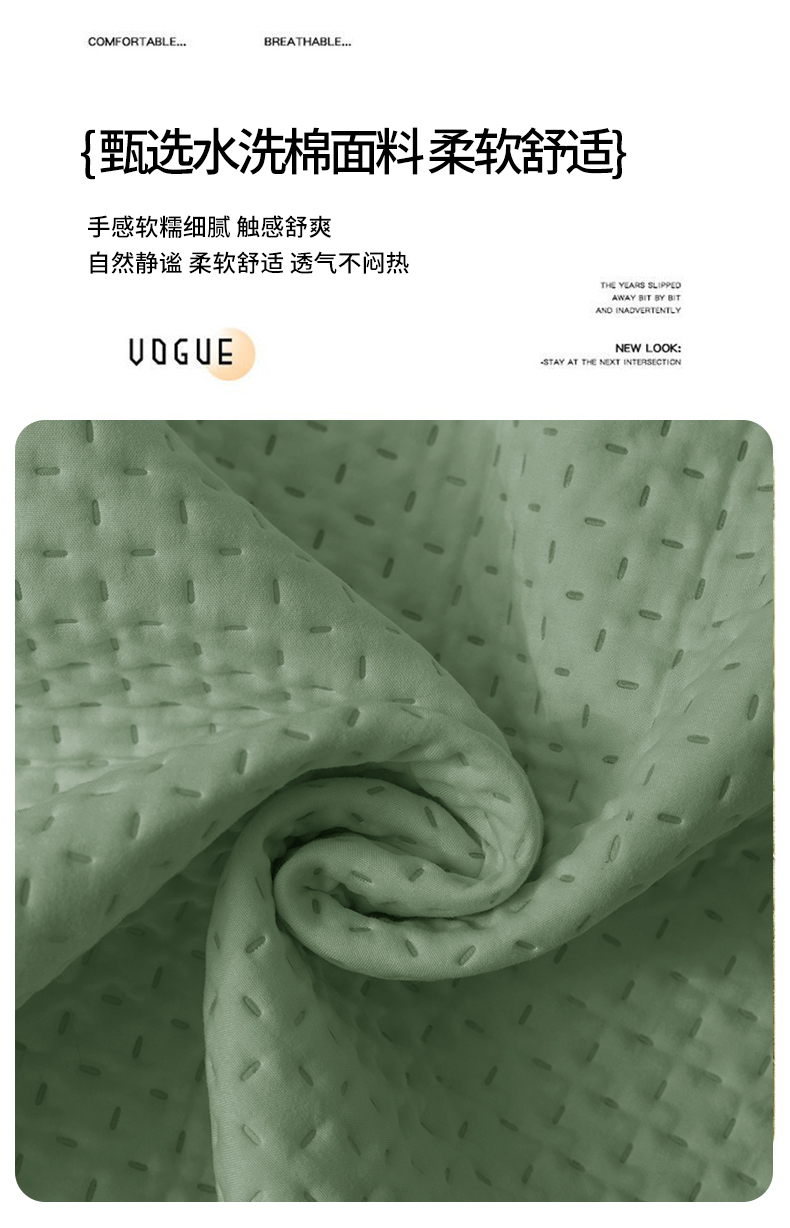 (总)恩和家纺 2025新款条纹立体泡泡纱亲肤棉四件套,藏蓝,纯白,淡烟紫,豆沙粉,米白,墨绿,深灰,深蓝