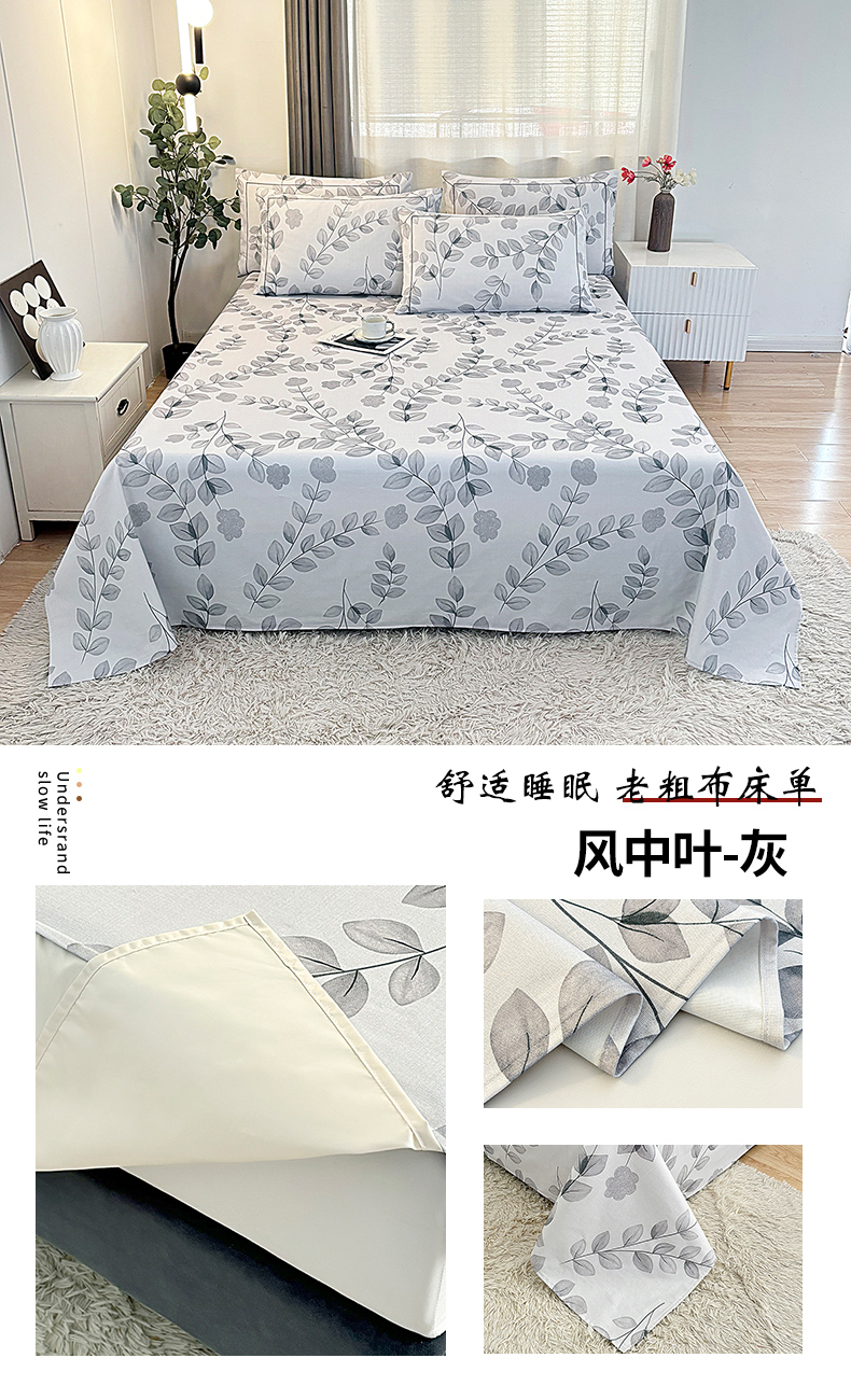 伊而梦蚊帐 2025新款A类老粗布抗菌床单 风中叶-灰