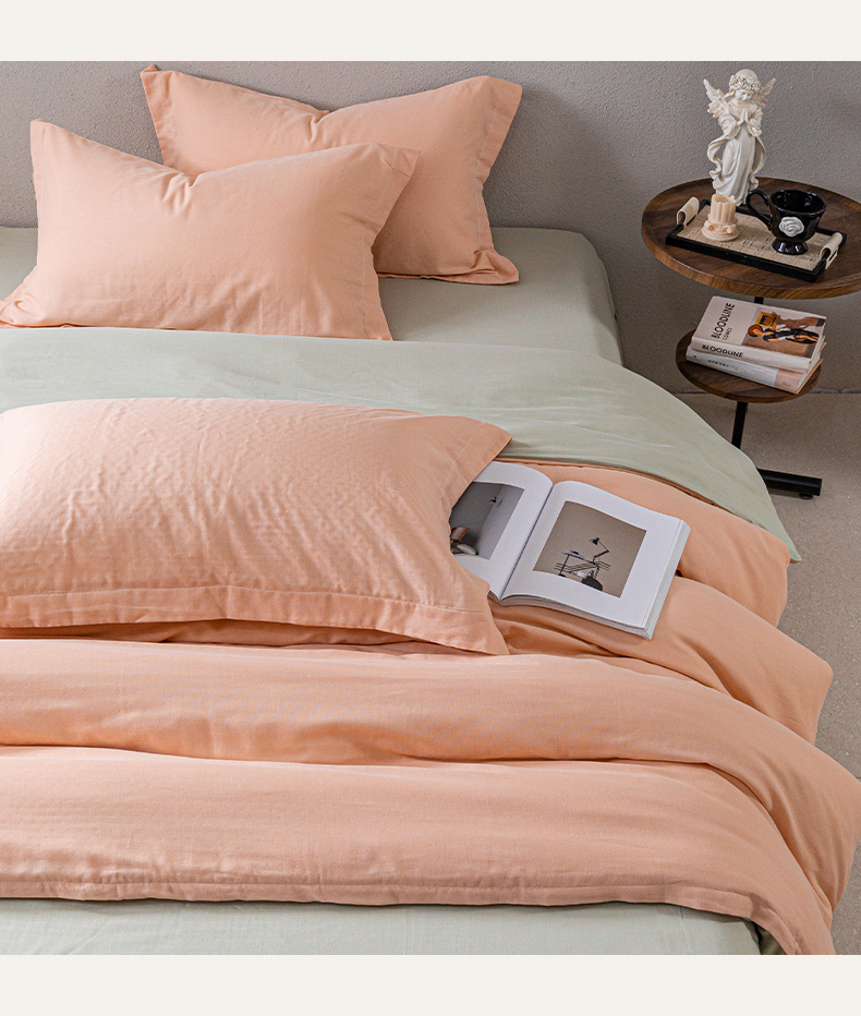 当前位置: 91家纺网 > 商品网购 > 床品套件 > 四件套 > 全棉普通四件套 > 锦罗绣 2025新款A类全棉有氧双层纱纯色四件套 橙+绿