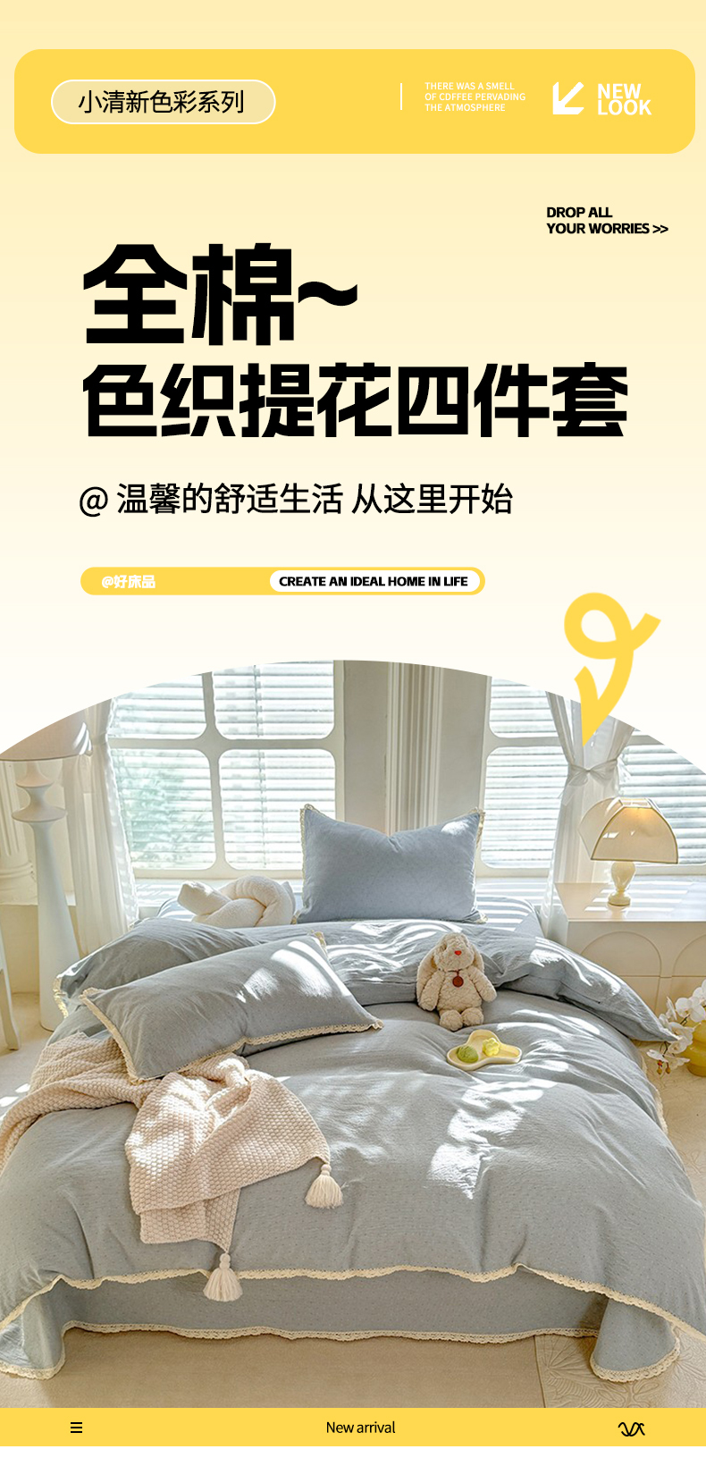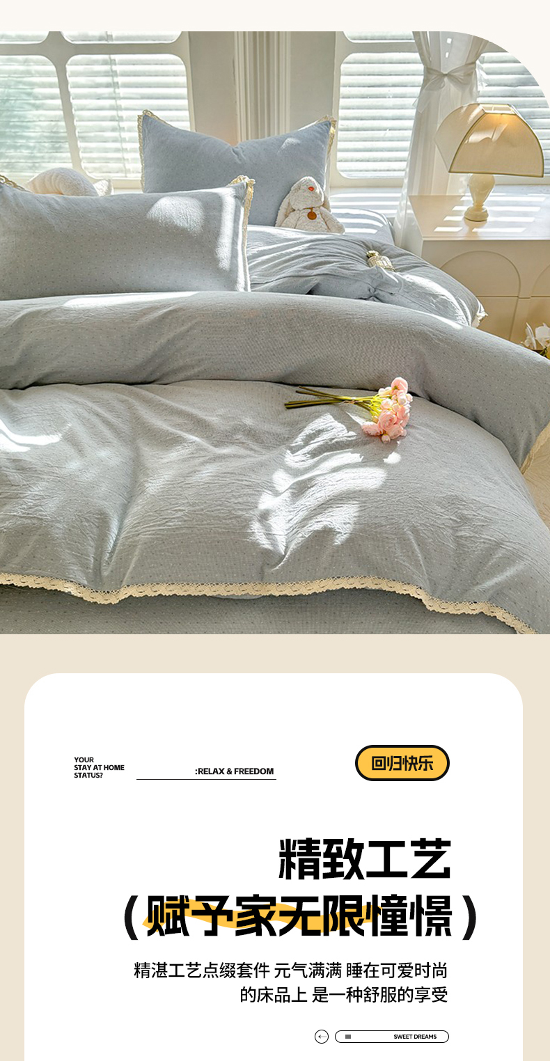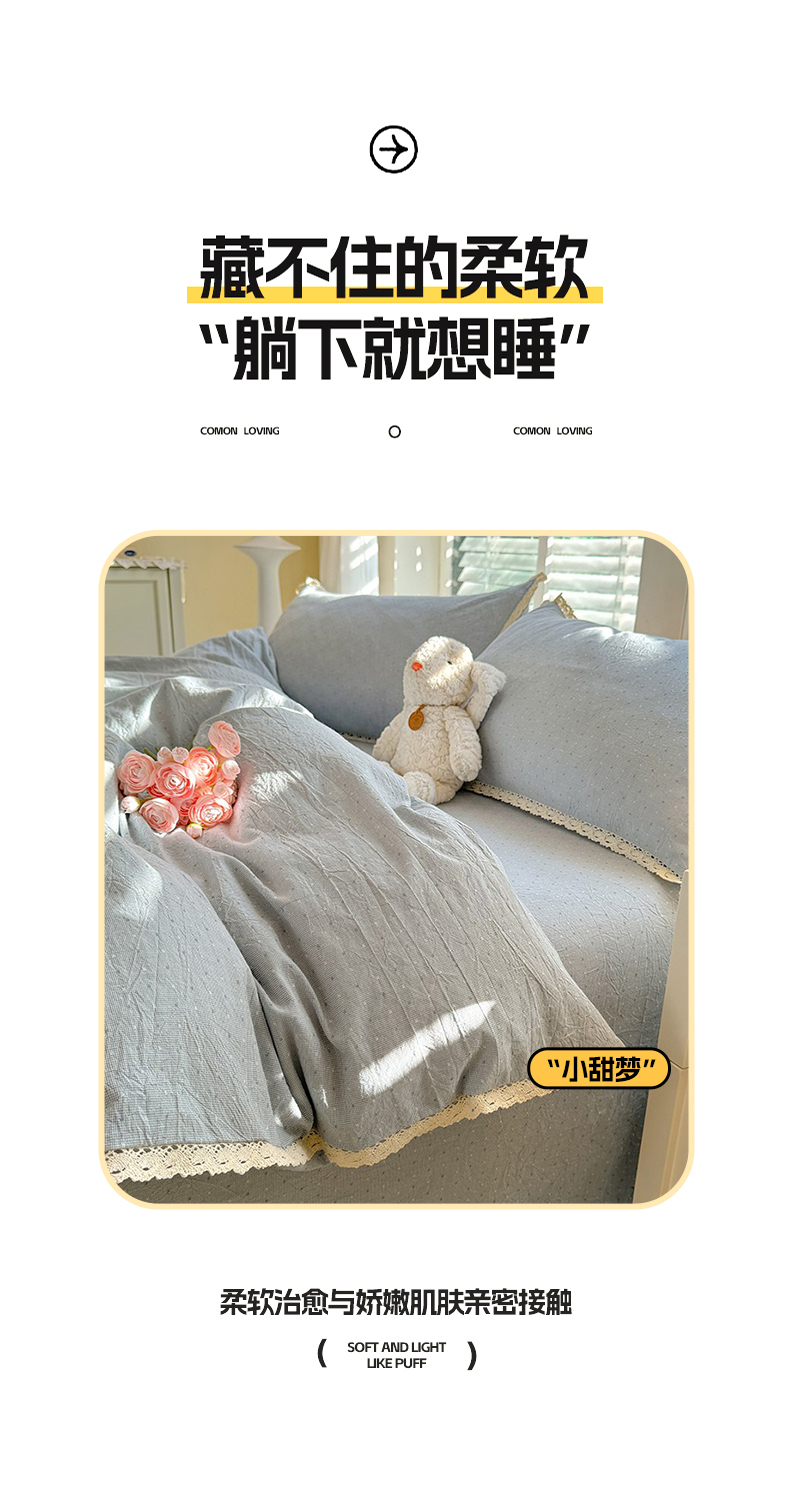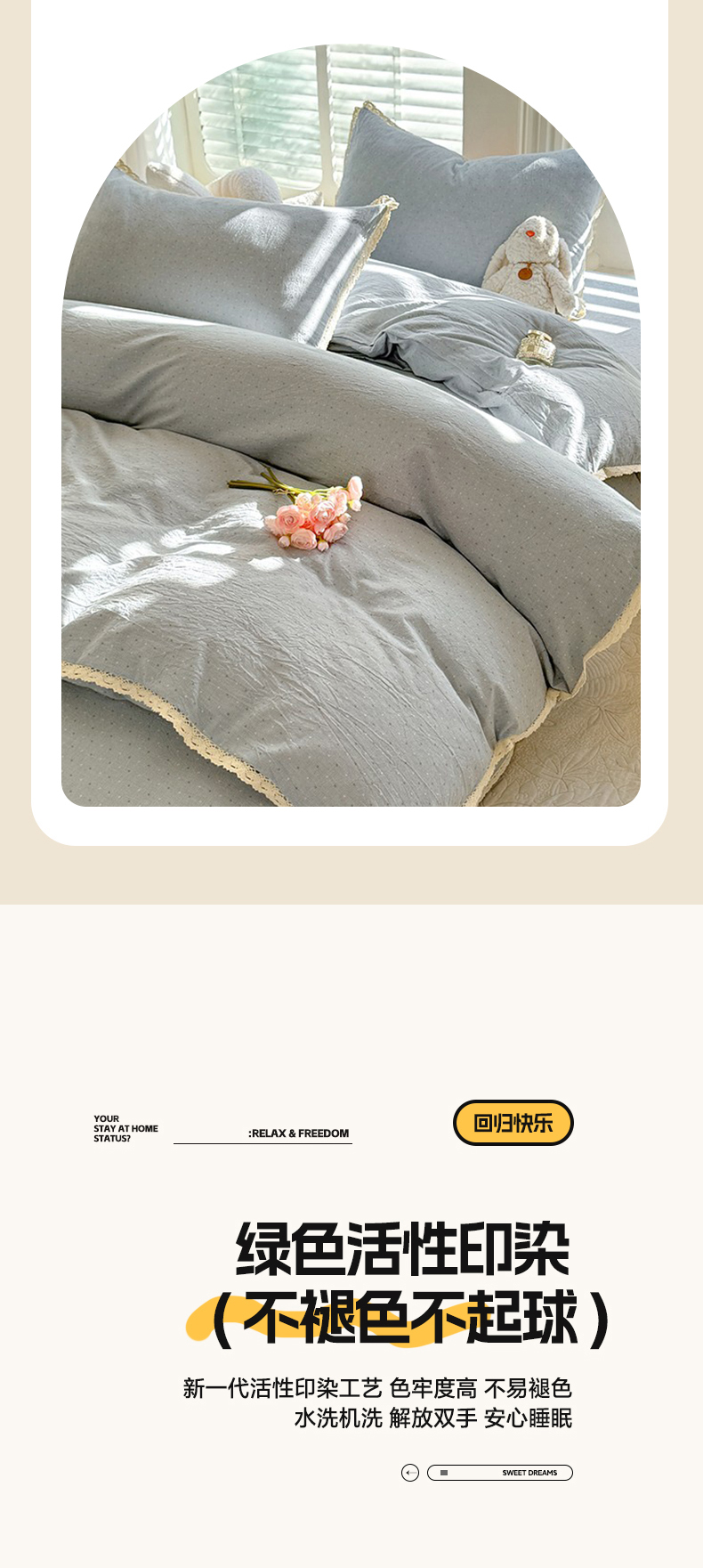 (总)棉小二 2025新款全棉色织提花水洗棉花边四件套-漫时光,漫时光-粉,漫时光-黄,漫时光-蓝,漫时光-紫