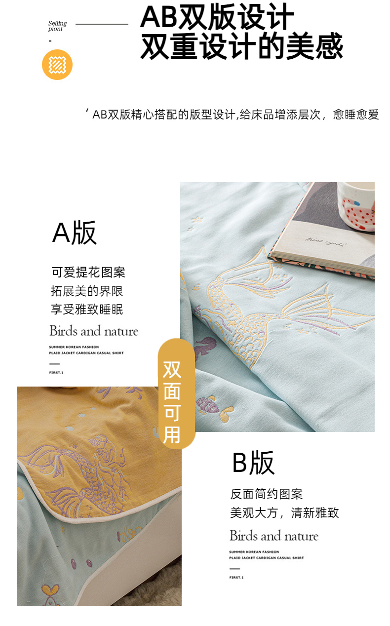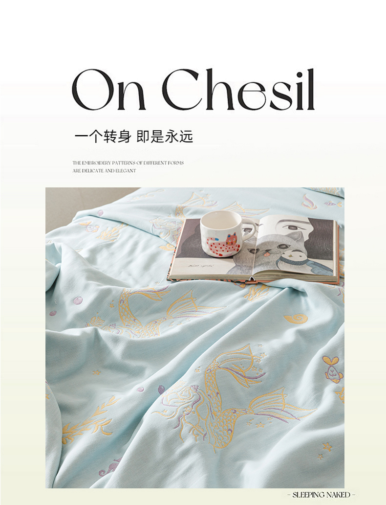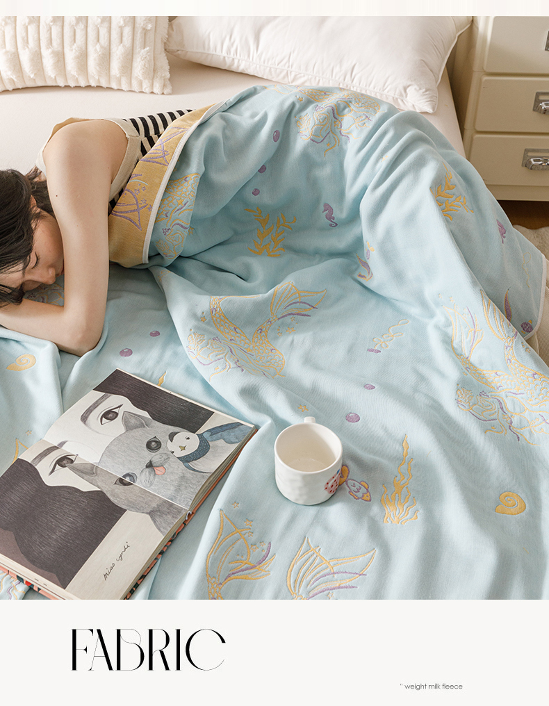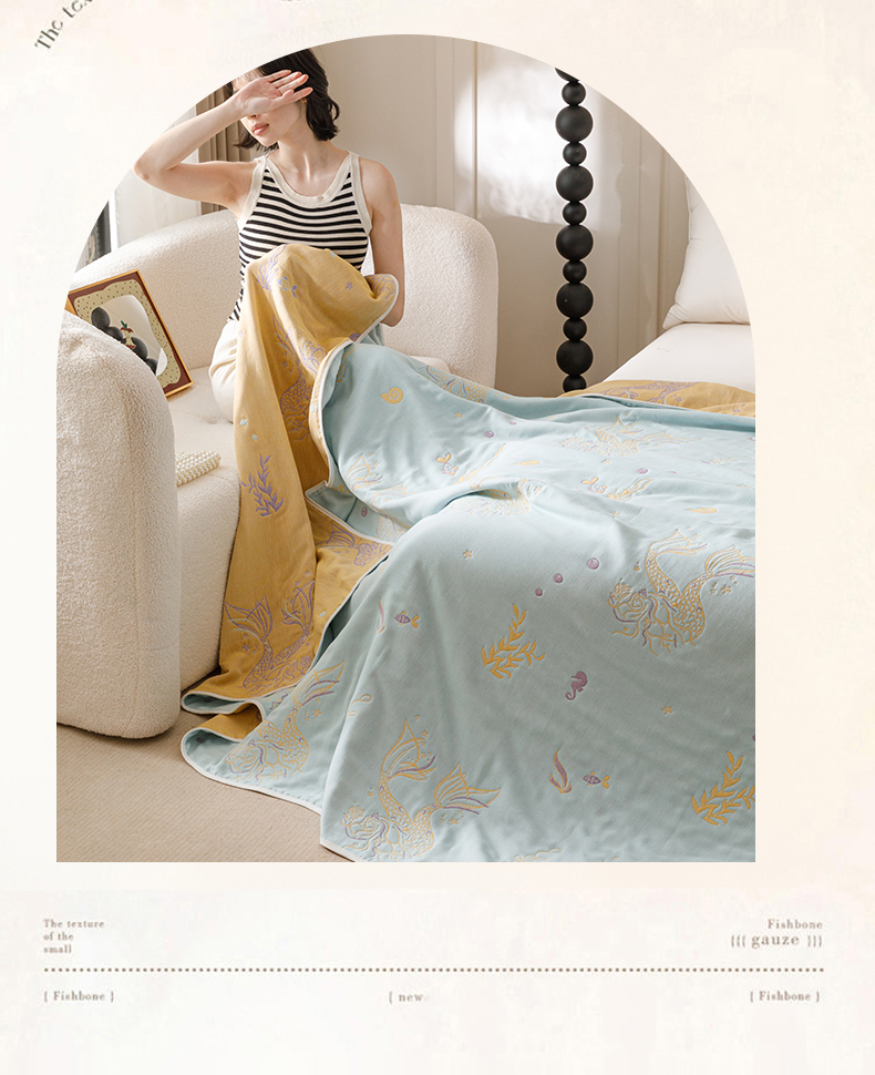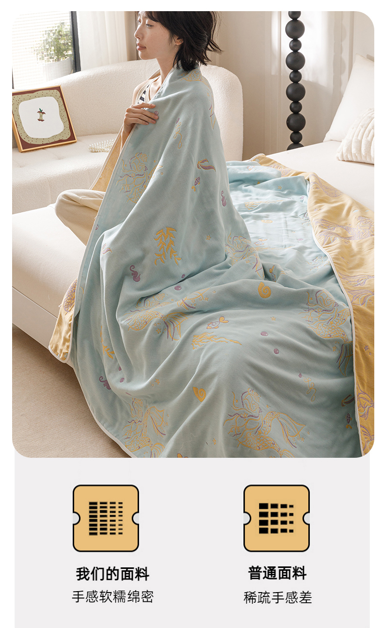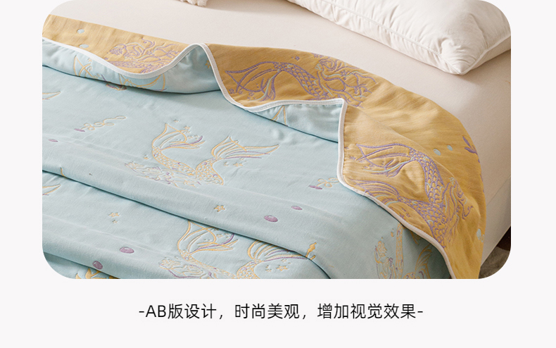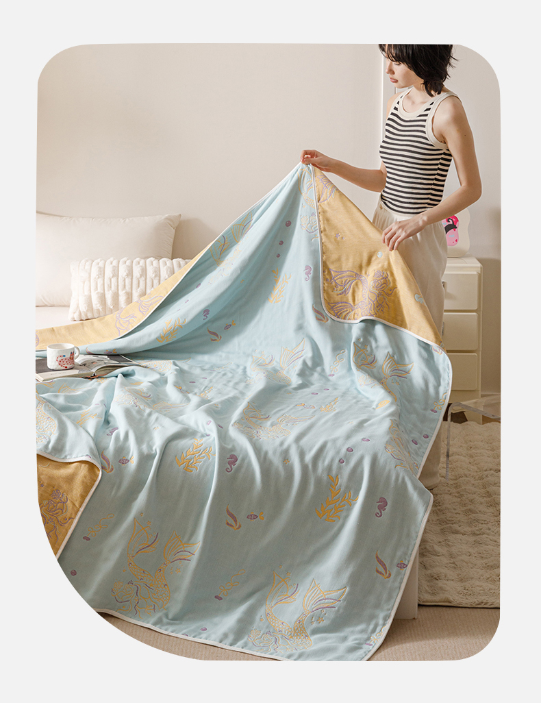 悦然毛巾被 2025新款全棉6层纱毛巾被 神秘人鱼绿